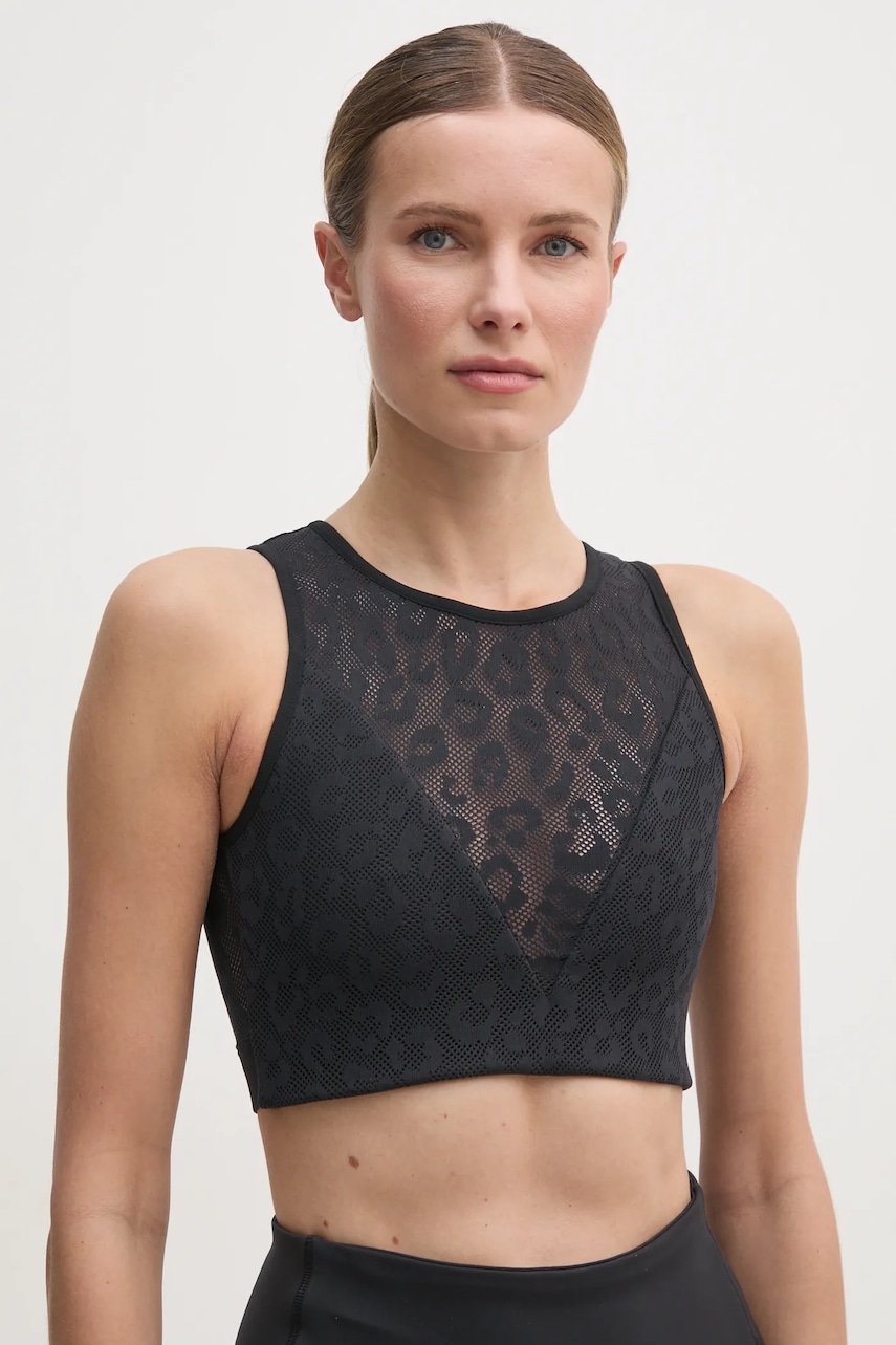 - Model wykonany z szybkoschnącej dzianiny zapewniającej komfort i suchość, dzięki dobrym właściwościom odprowadzającym wilgoć. - Model wykonany z lekkiego, siateczkowego materiału, który zachowuje wysoką oddychalność podczas aktywności. - Nieregulowane ramiączka nie zsuwają się z ramion zapewniając komfort podczas aktywności. - Płaskie szwy chronią skórę przed otarciami i podrażnieniami oraz zapewniają wysoki poziom komfortu użytkowania podczas aktywności.