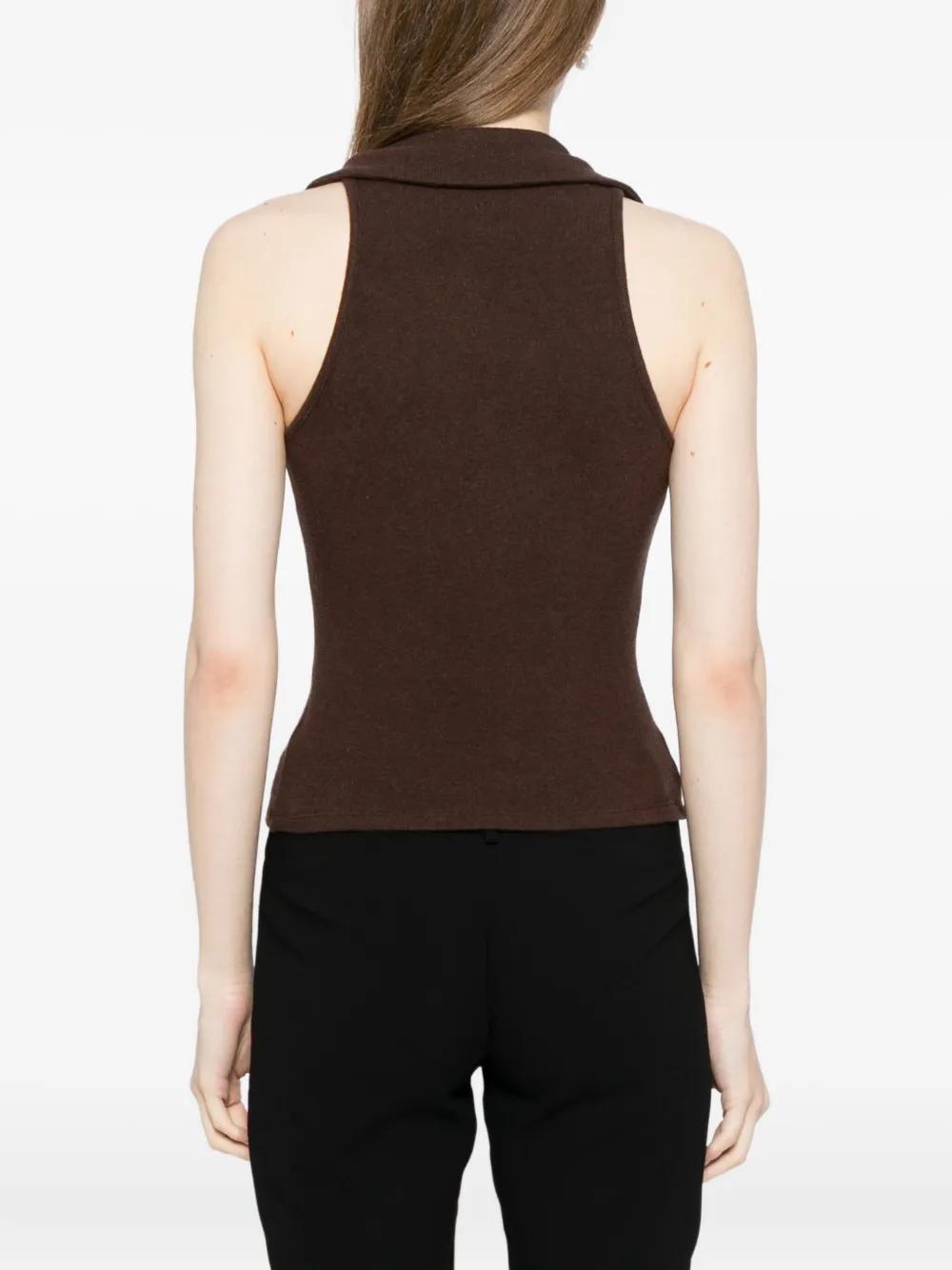 dark brown scoop neck contrast topstitching sleeveless slim fit