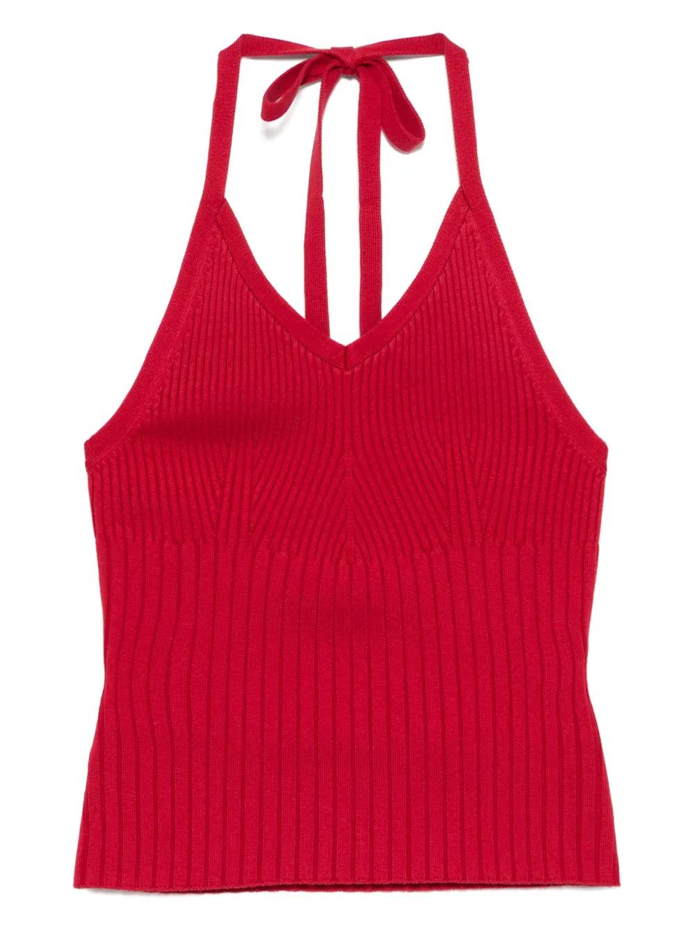 white linen/flax halterneck tie fastening square neck smocked panel straight hem cropped