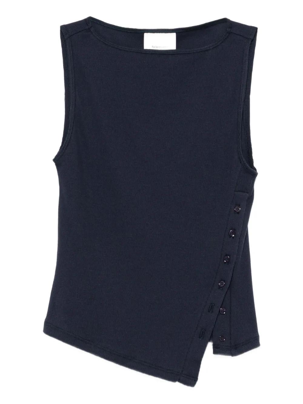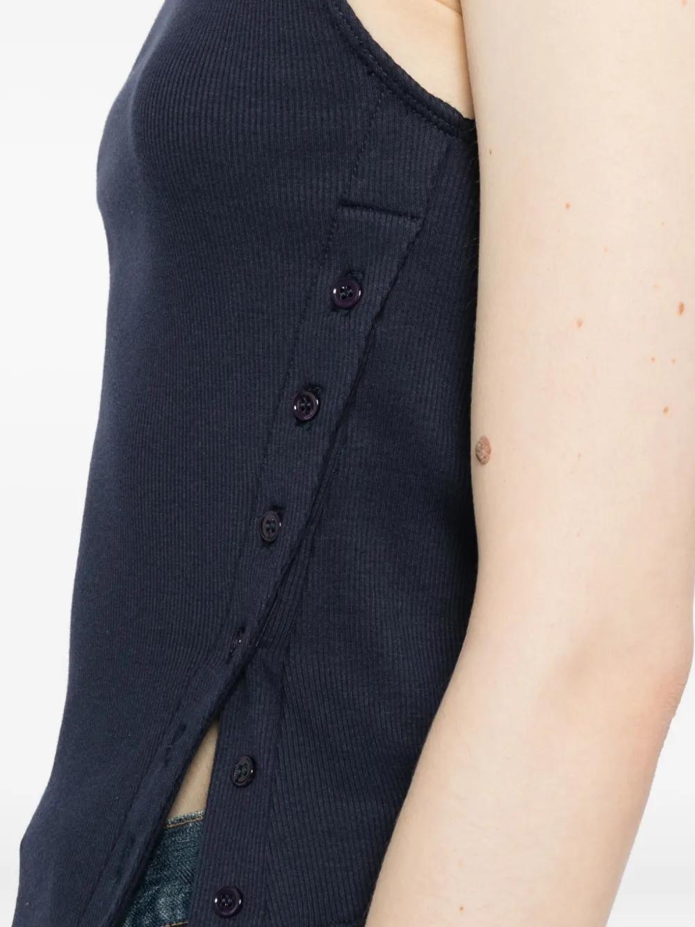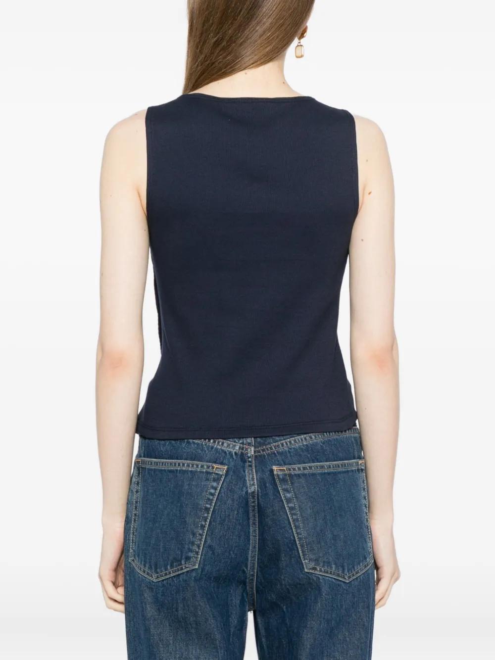dark brown scoop neck contrast topstitching sleeveless slim fit