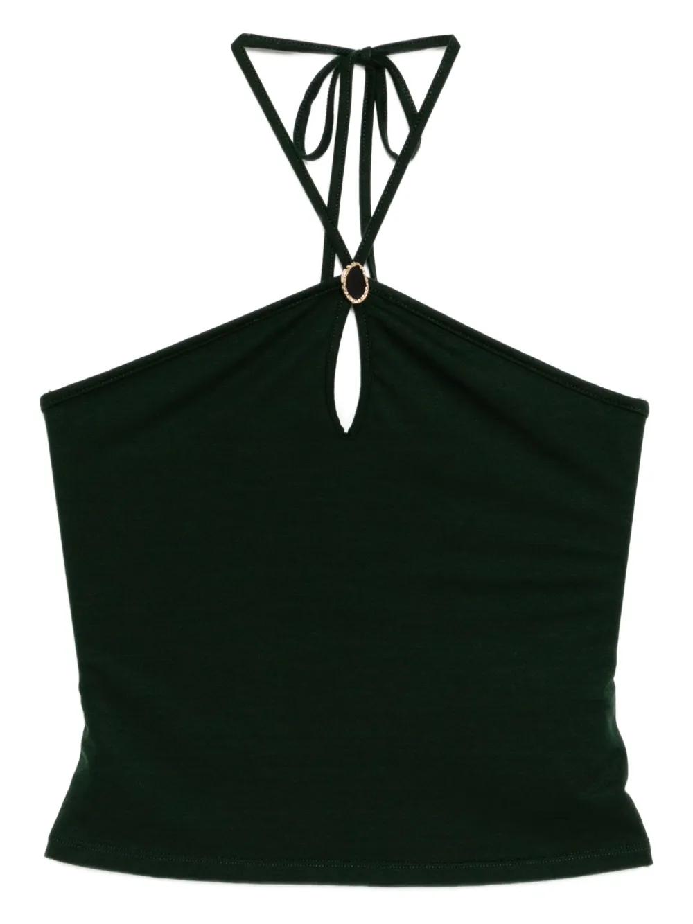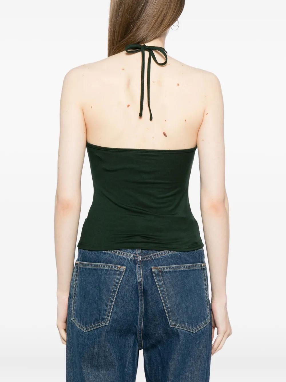 dark brown scoop neck contrast topstitching sleeveless slim fit