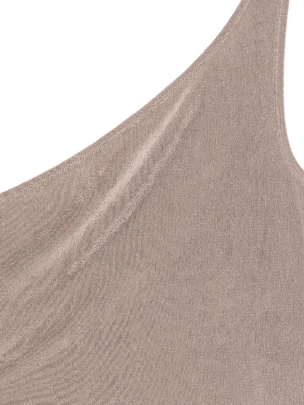dark brown scoop neck contrast topstitching sleeveless slim fit