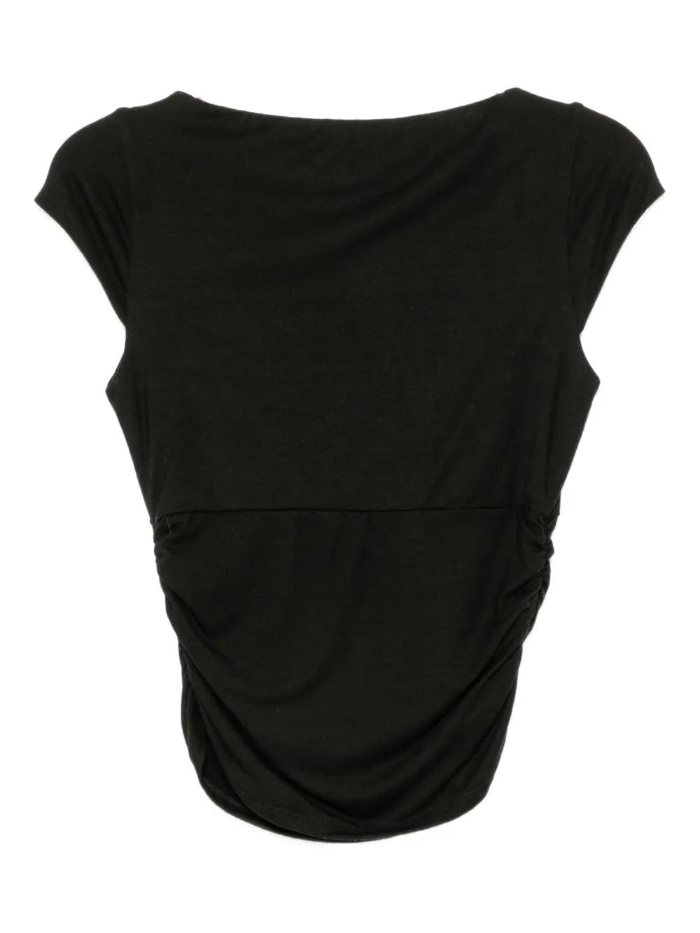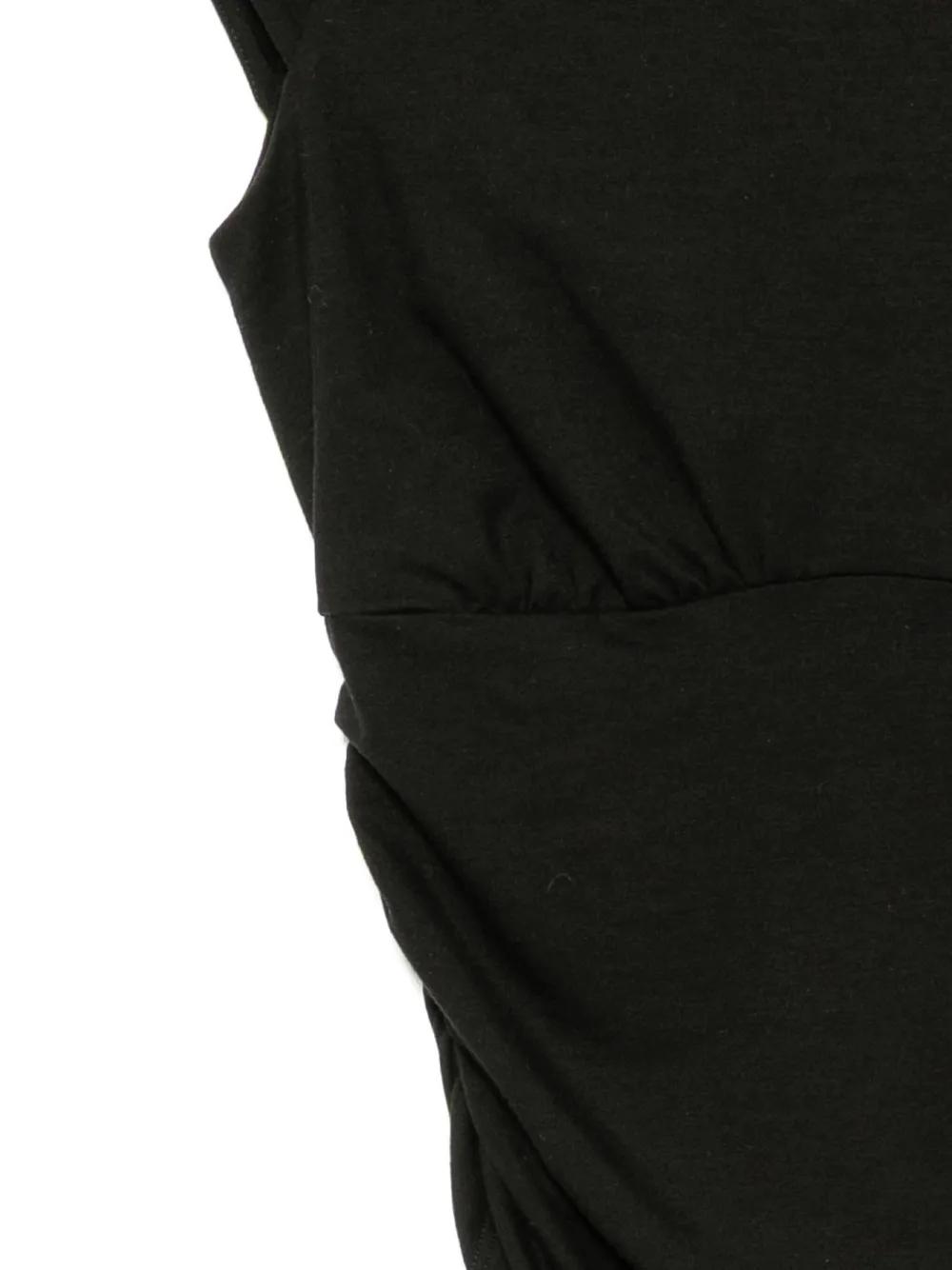black front button fastening two adjustable shoulder straps two button-fastening chest pockets asymmetric hem