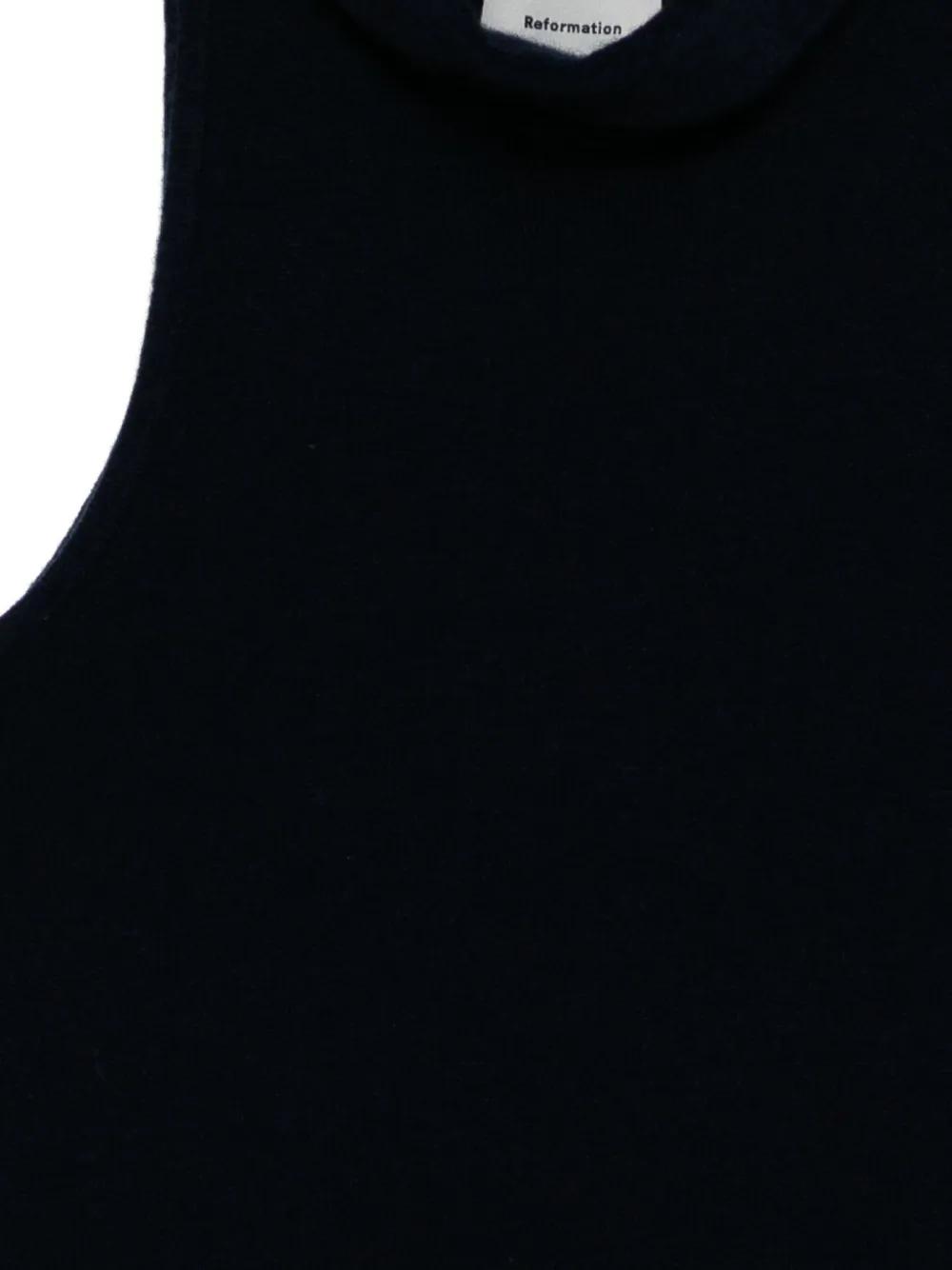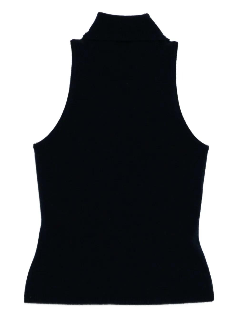 black merino wool fine knit stud detail at the hem crew neck sleeveless straight hem