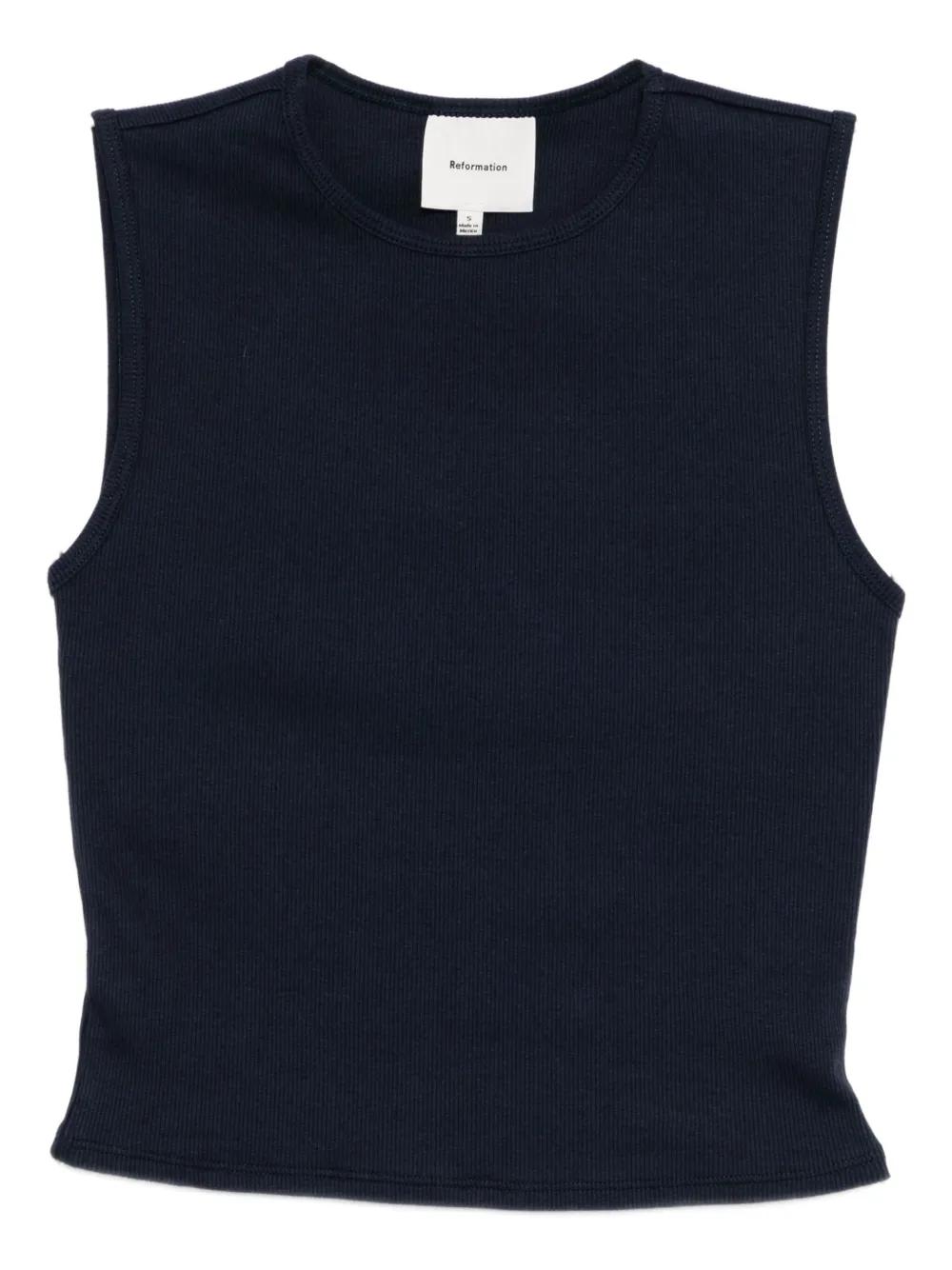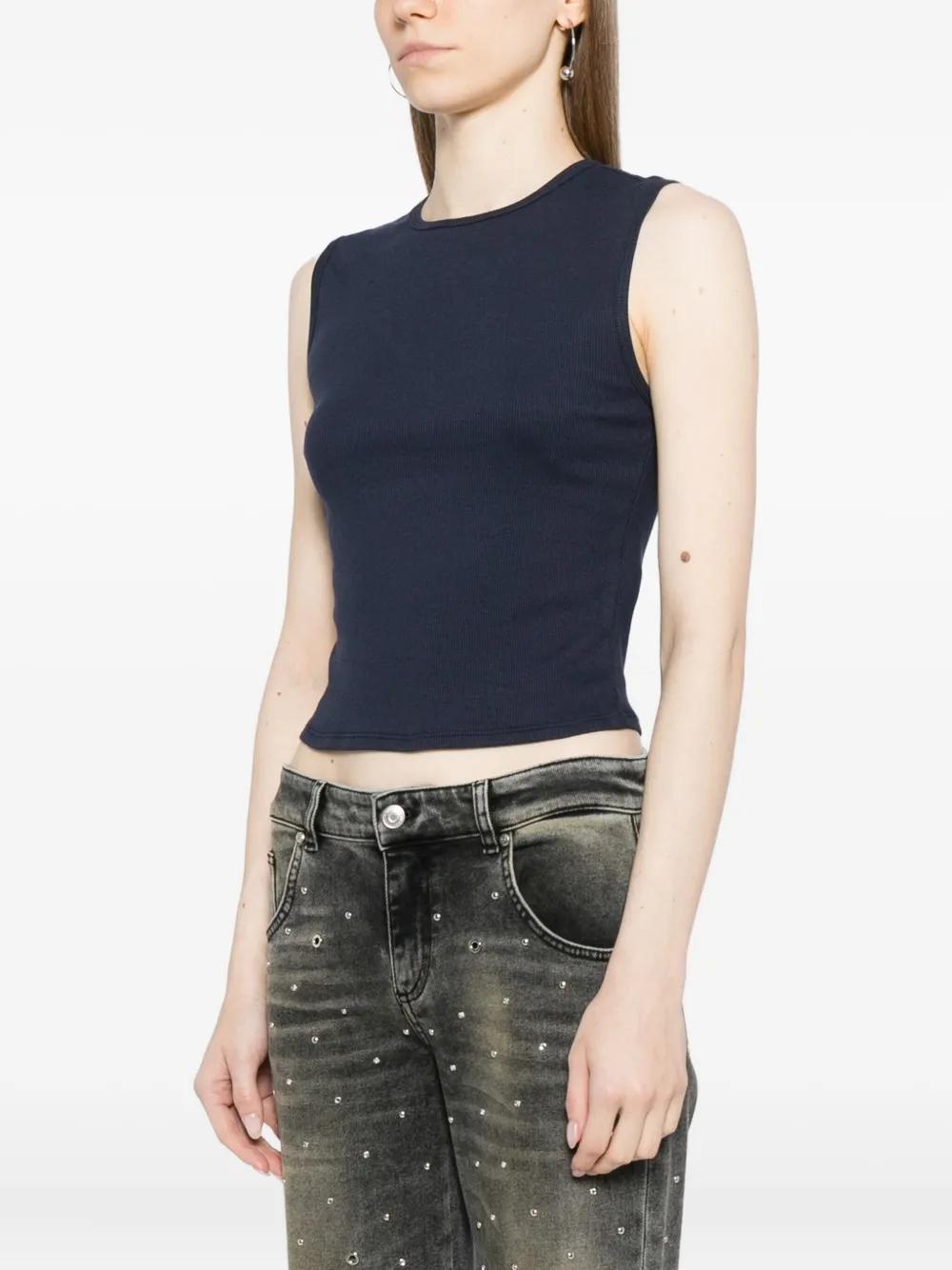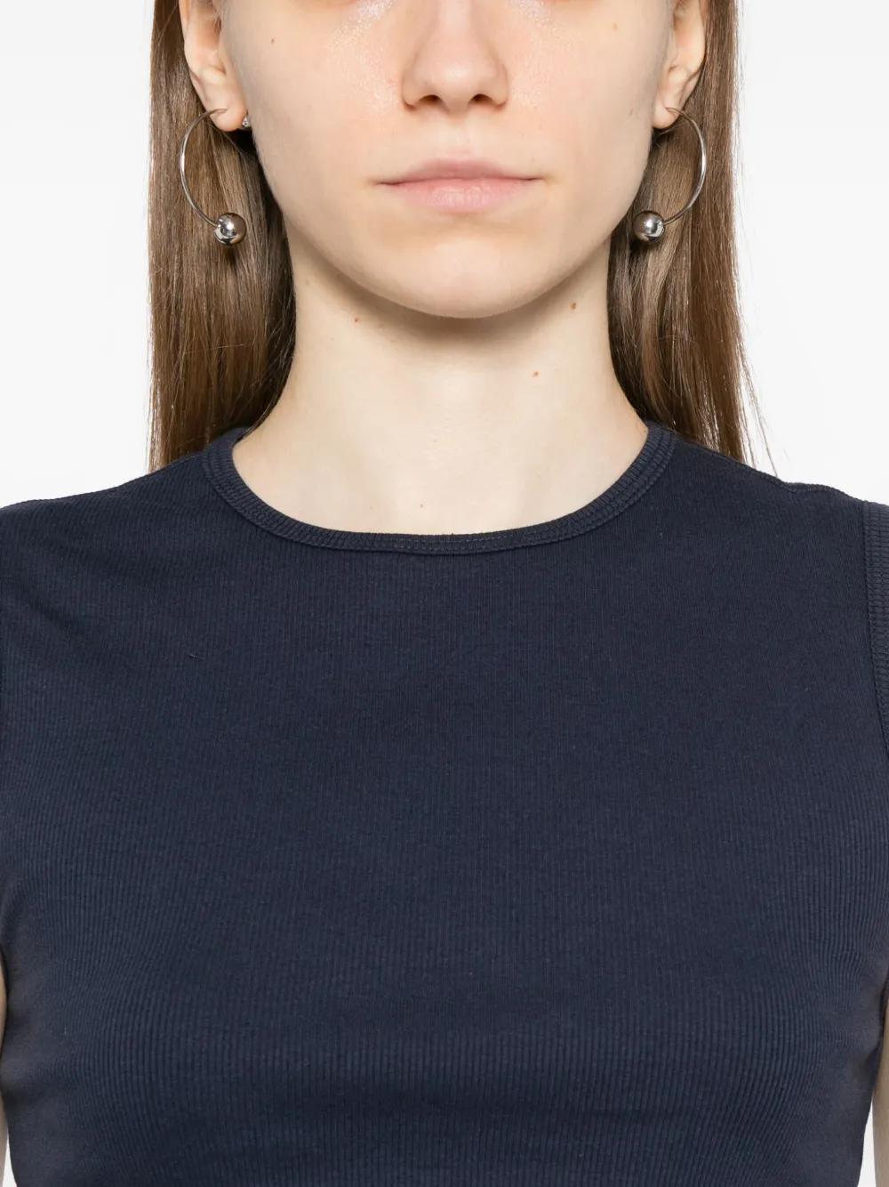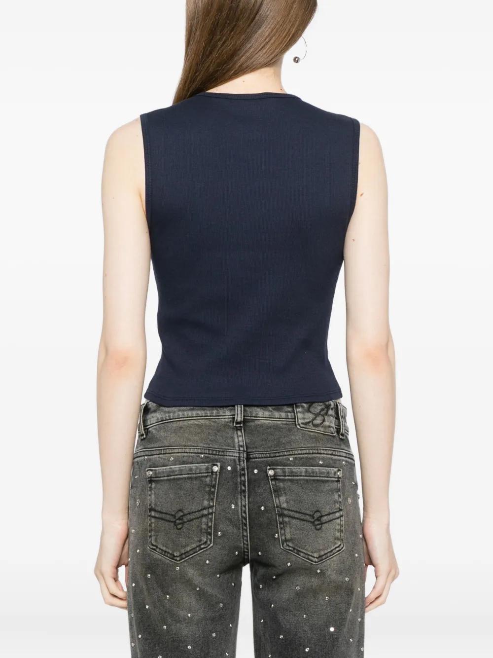 dark brown scoop neck contrast topstitching sleeveless slim fit