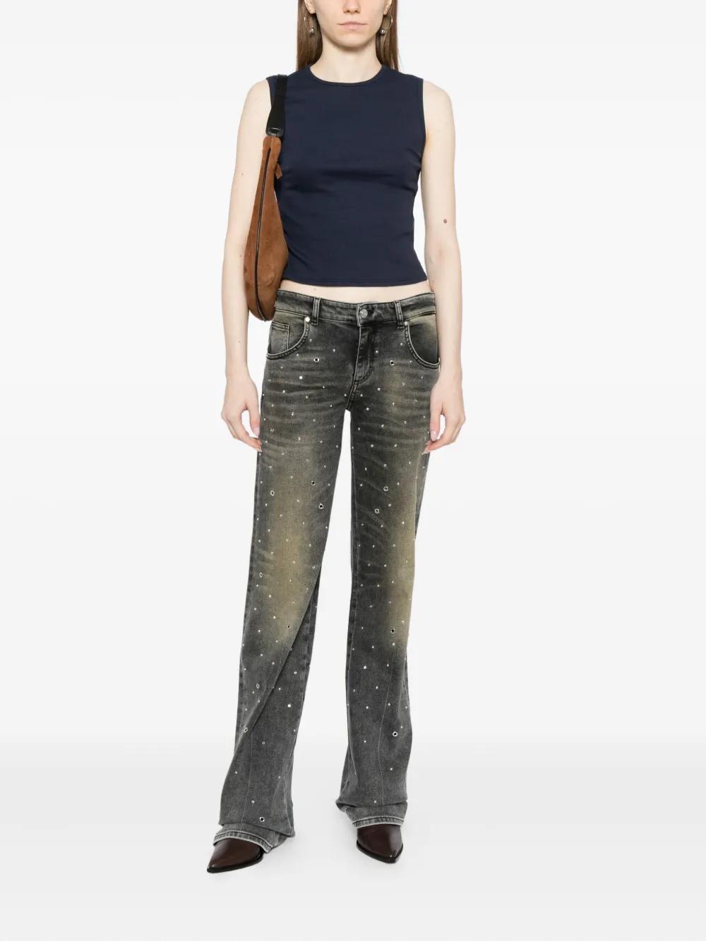 black merino wool fine knit stud detail at the hem crew neck sleeveless straight hem