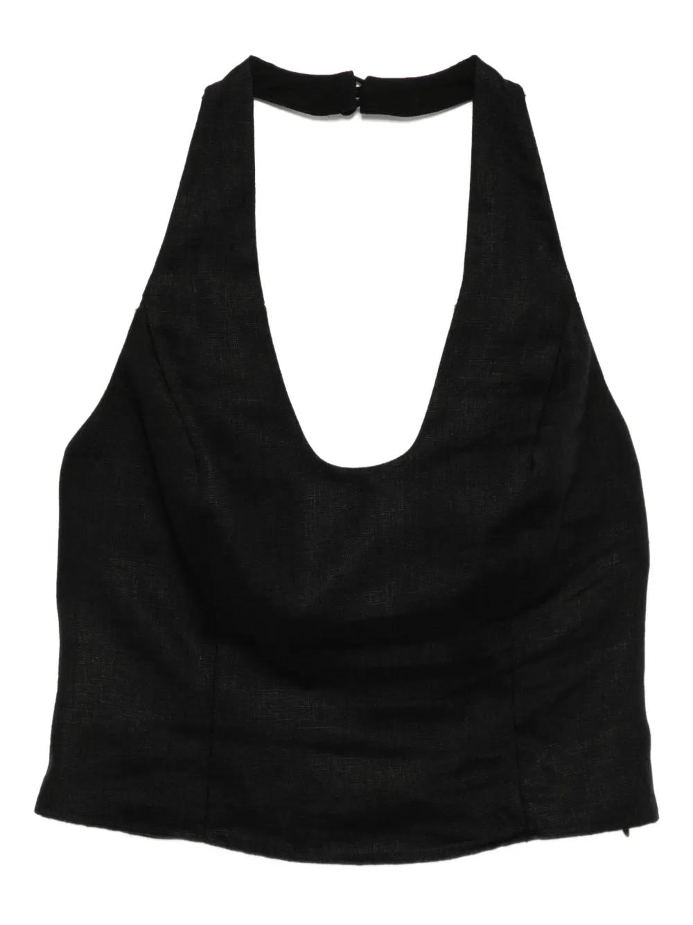 dark brown scoop neck contrast topstitching sleeveless slim fit