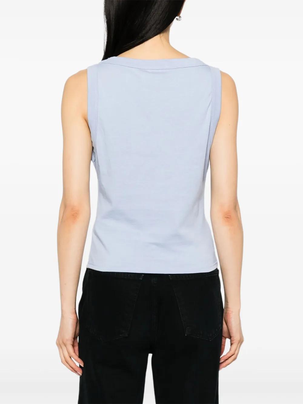 dark brown scoop neck contrast topstitching sleeveless slim fit