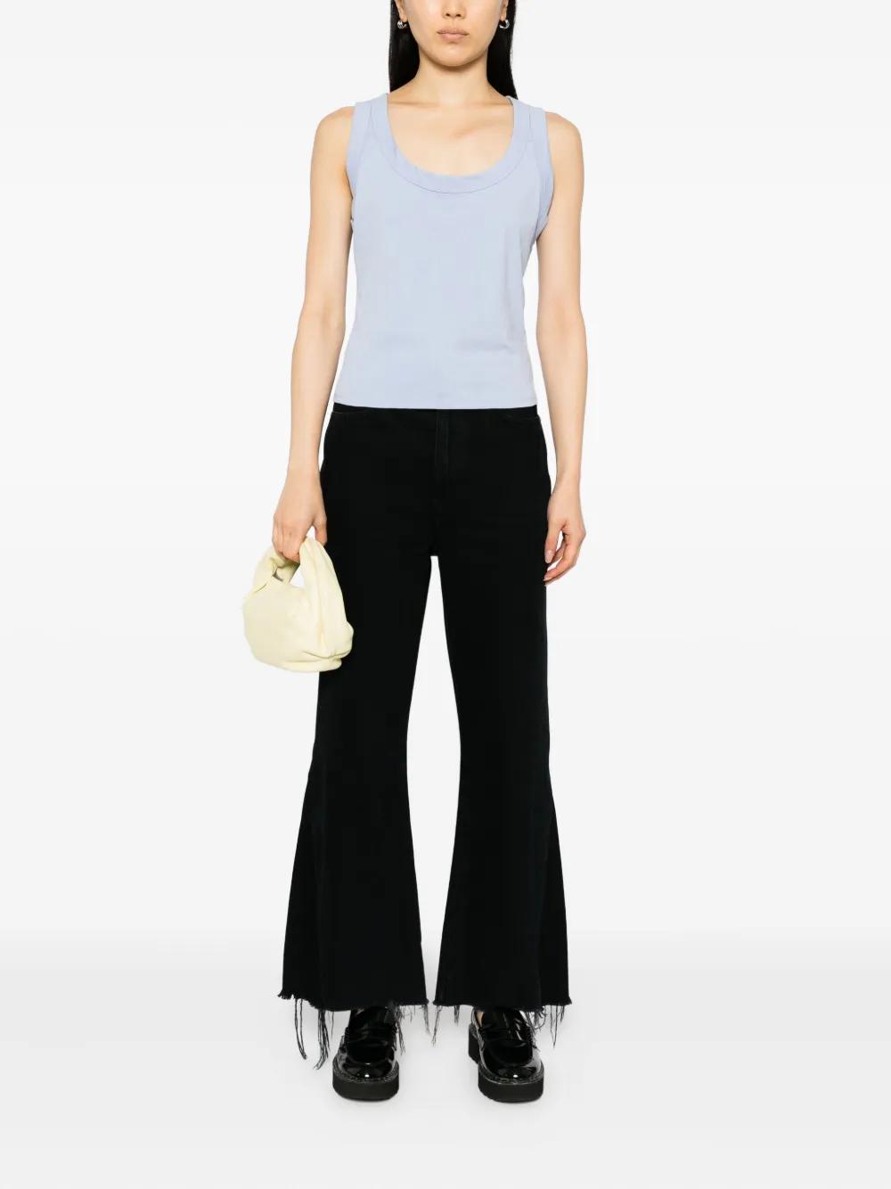 black merino wool fine knit stud detail at the hem crew neck sleeveless straight hem