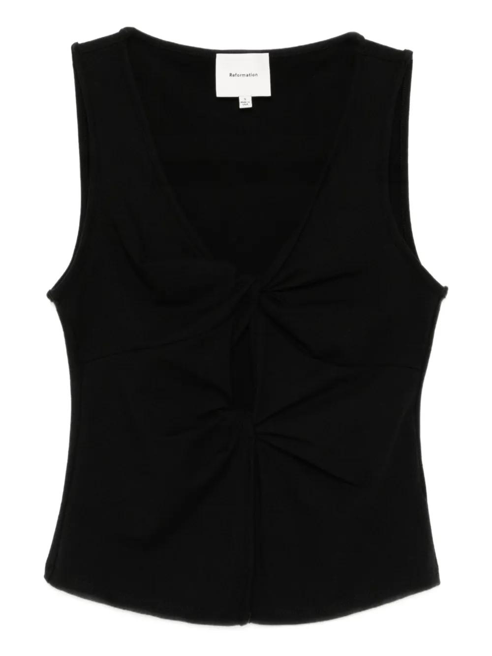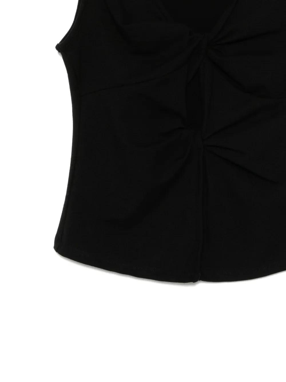 dark brown scoop neck contrast topstitching sleeveless slim fit