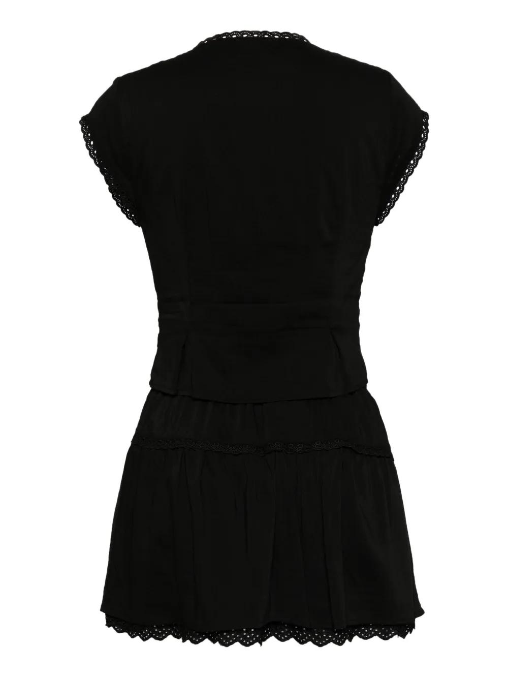 black organic cotton blend top: front button fastening lace trim sleeveless cropped skirt: elasticated waistband layered details