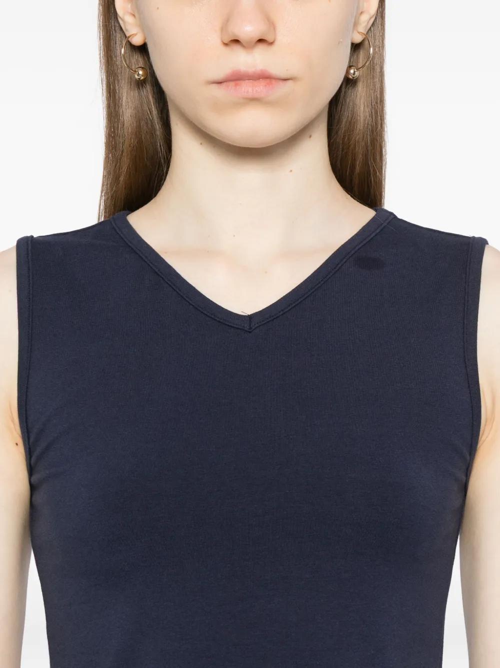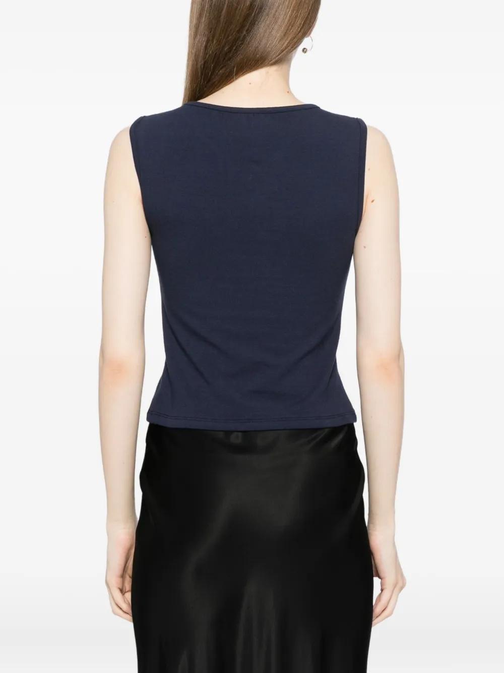 dark brown scoop neck contrast topstitching sleeveless slim fit