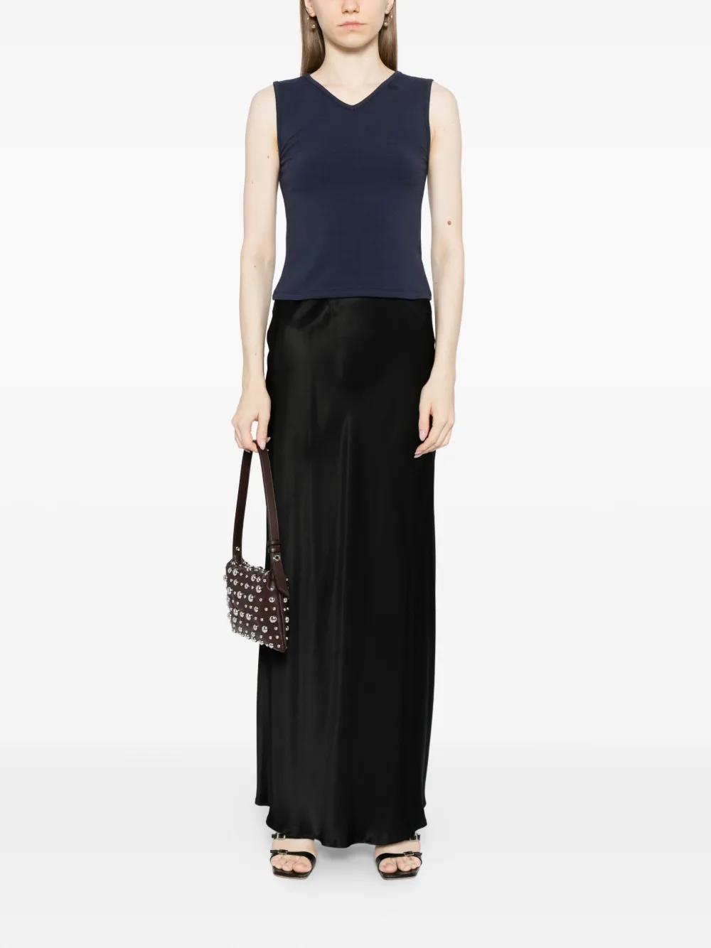 black merino wool fine knit stud detail at the hem crew neck sleeveless straight hem