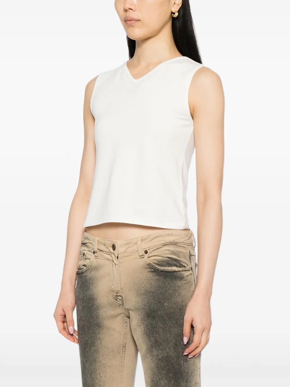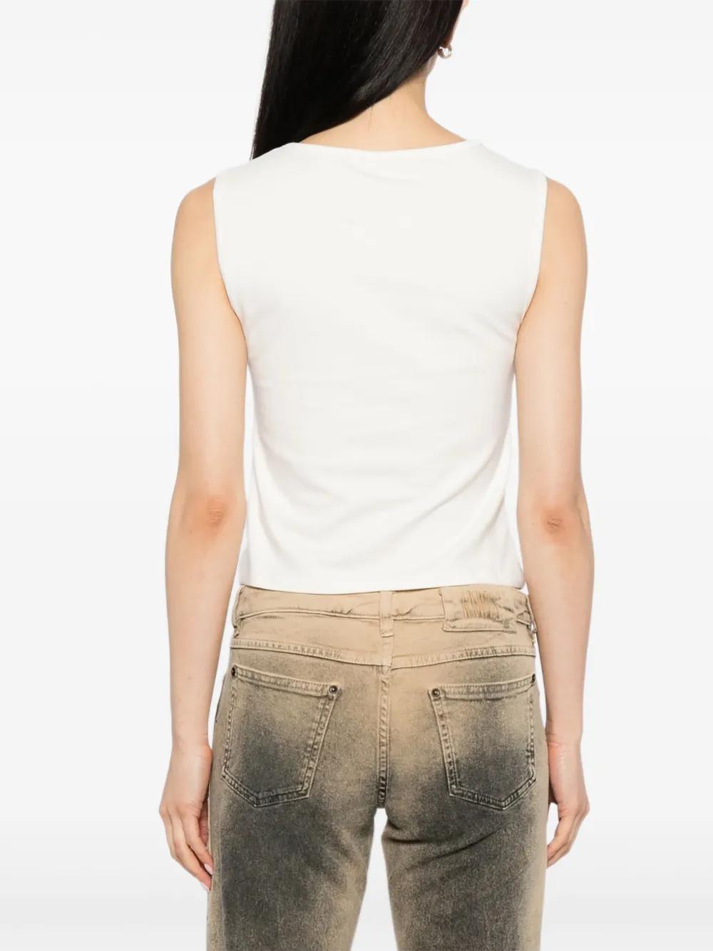 dark brown scoop neck contrast topstitching sleeveless slim fit