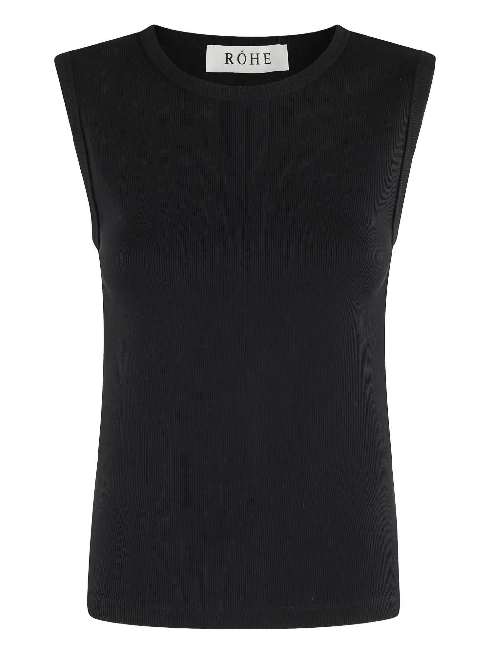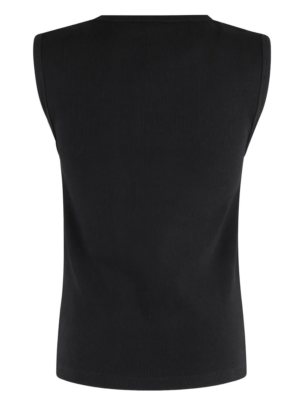 black ribbed texture crew neckline sleeveless design relaxed fit
