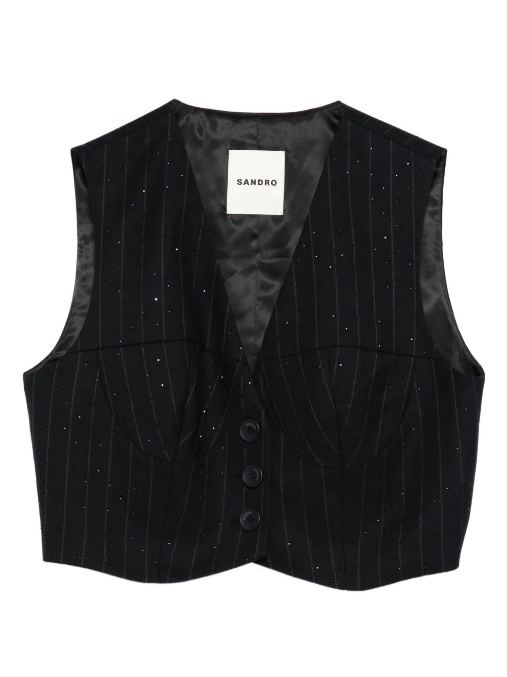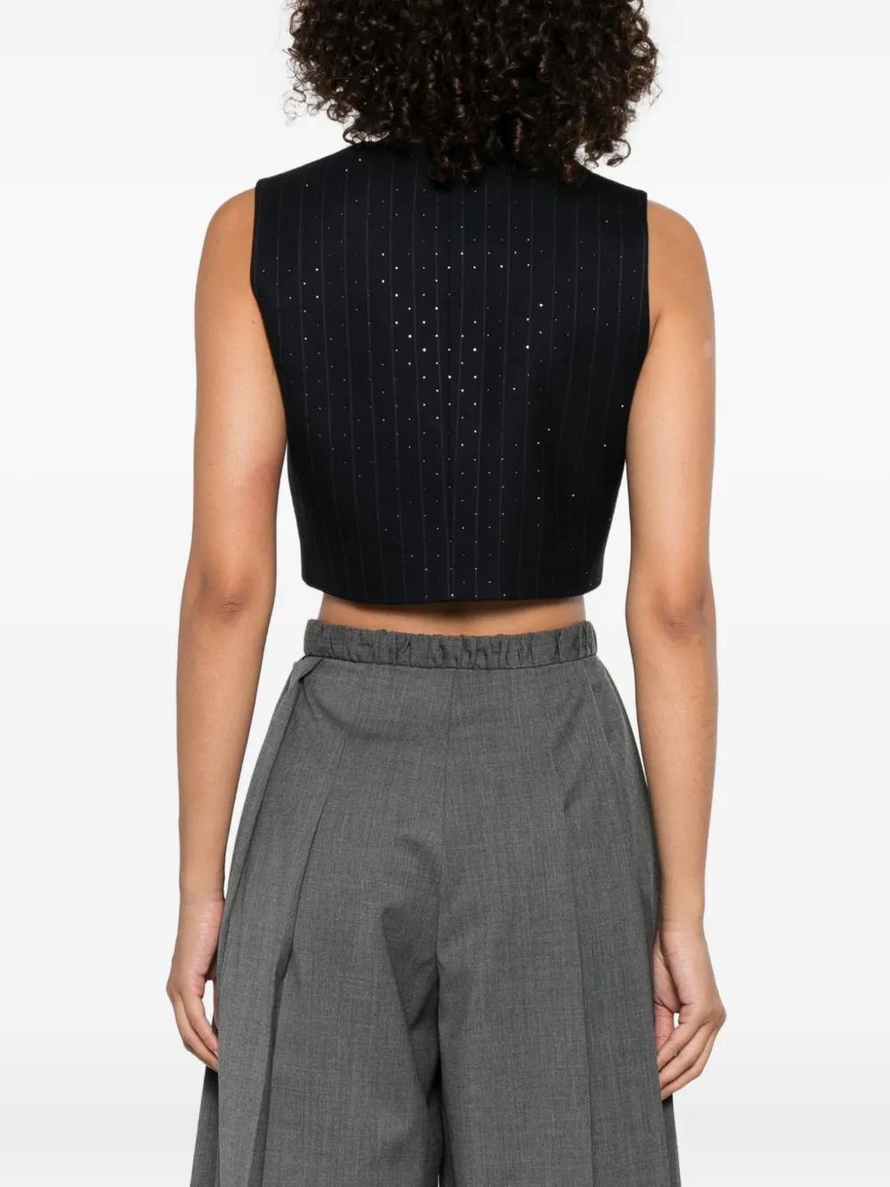 navy blue front button fastening pinstripe pattern v-neck sleeveless cropped