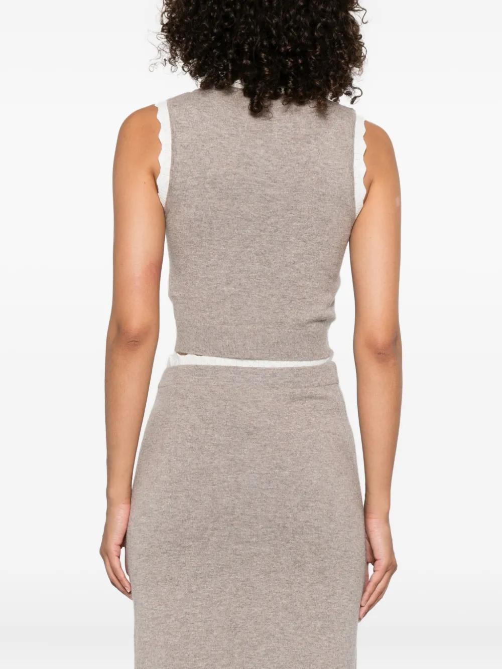 taupe beige cashmere-wool blend scalloped trim sleeveless round neck cropped length