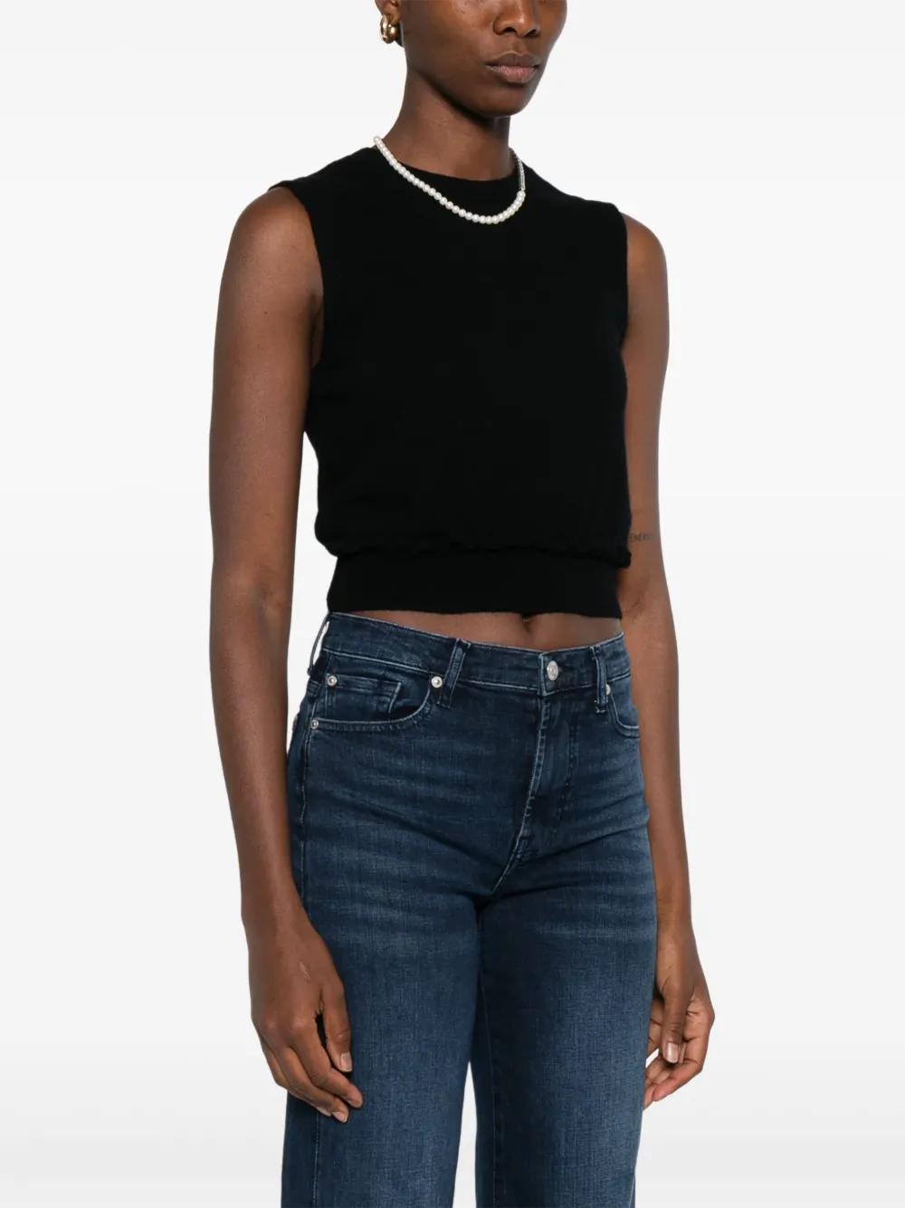 black V-neck wide shoulder straps appliqué logo sleeveless