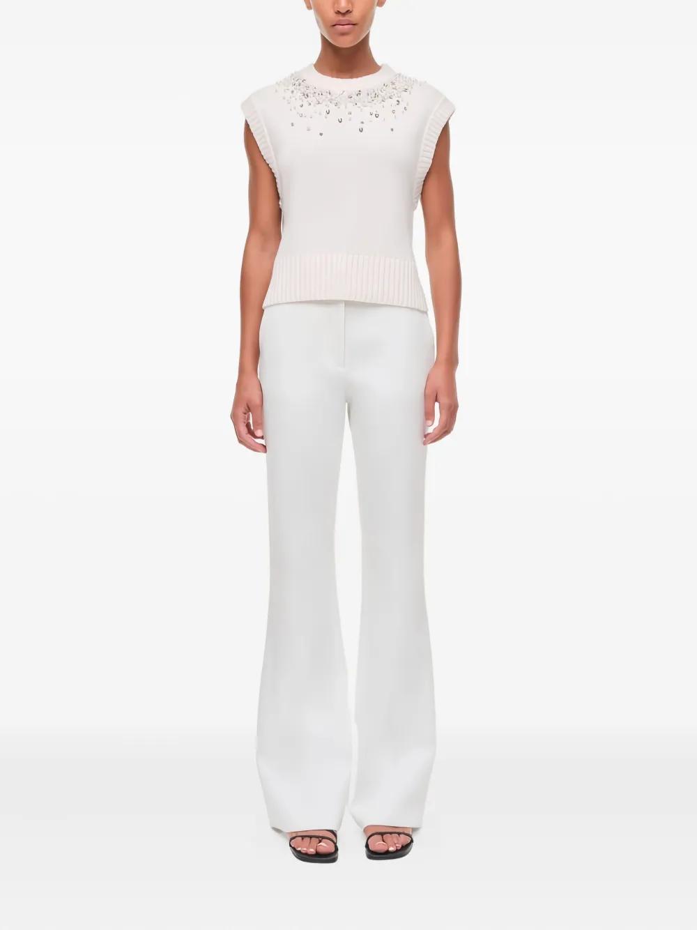 white bead embellishment round neck sleeveless