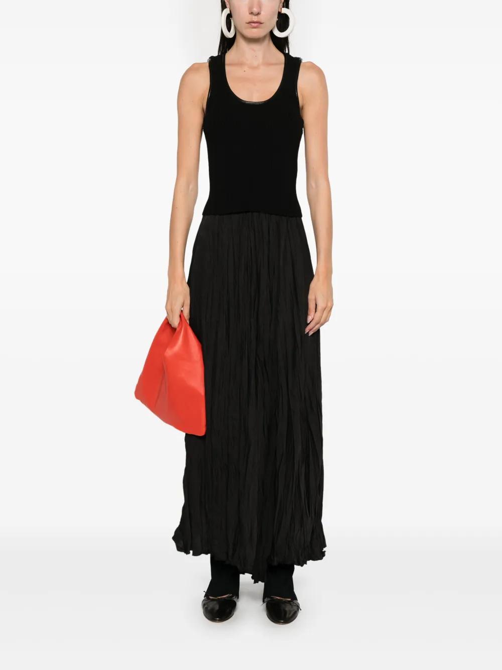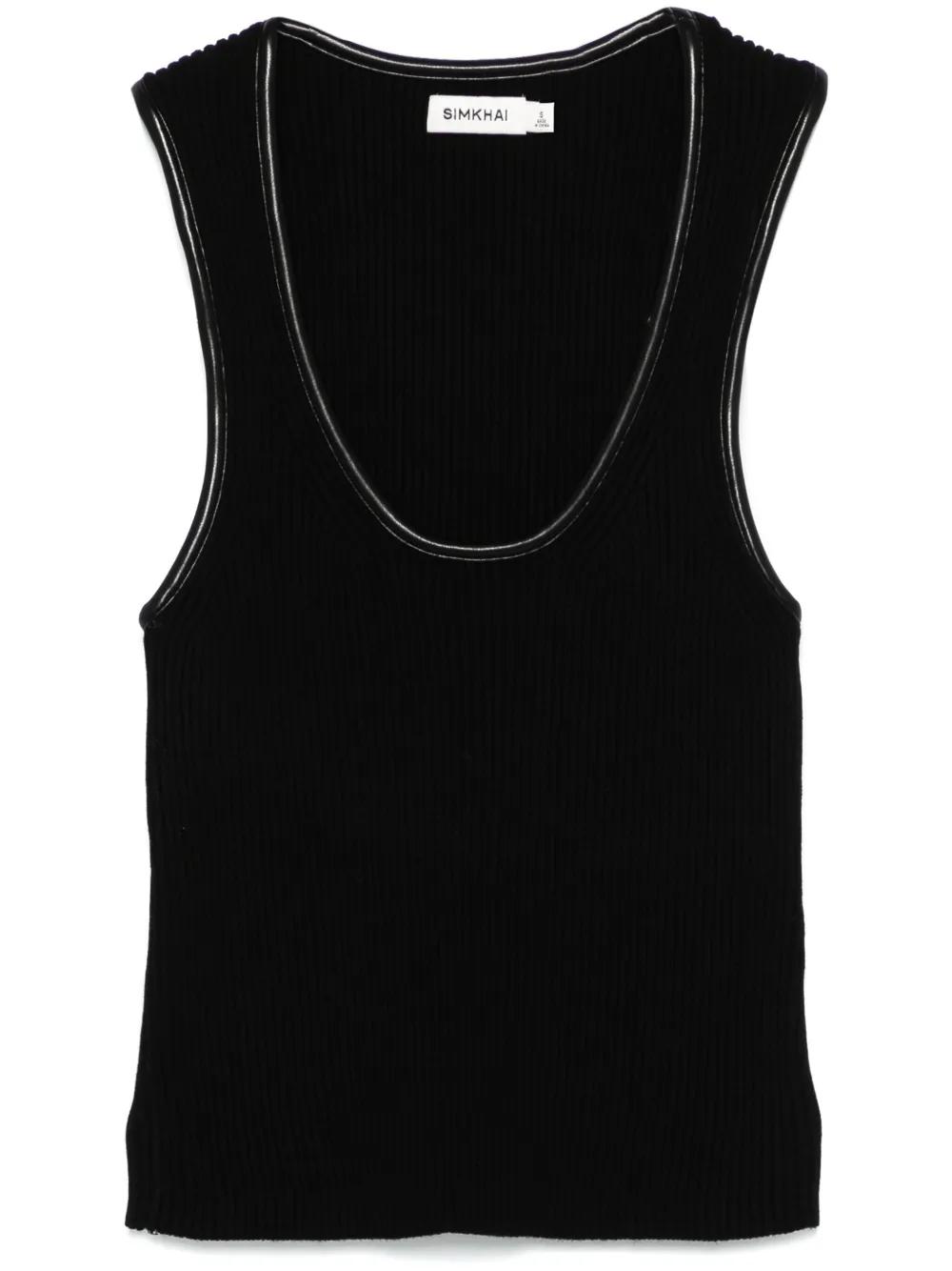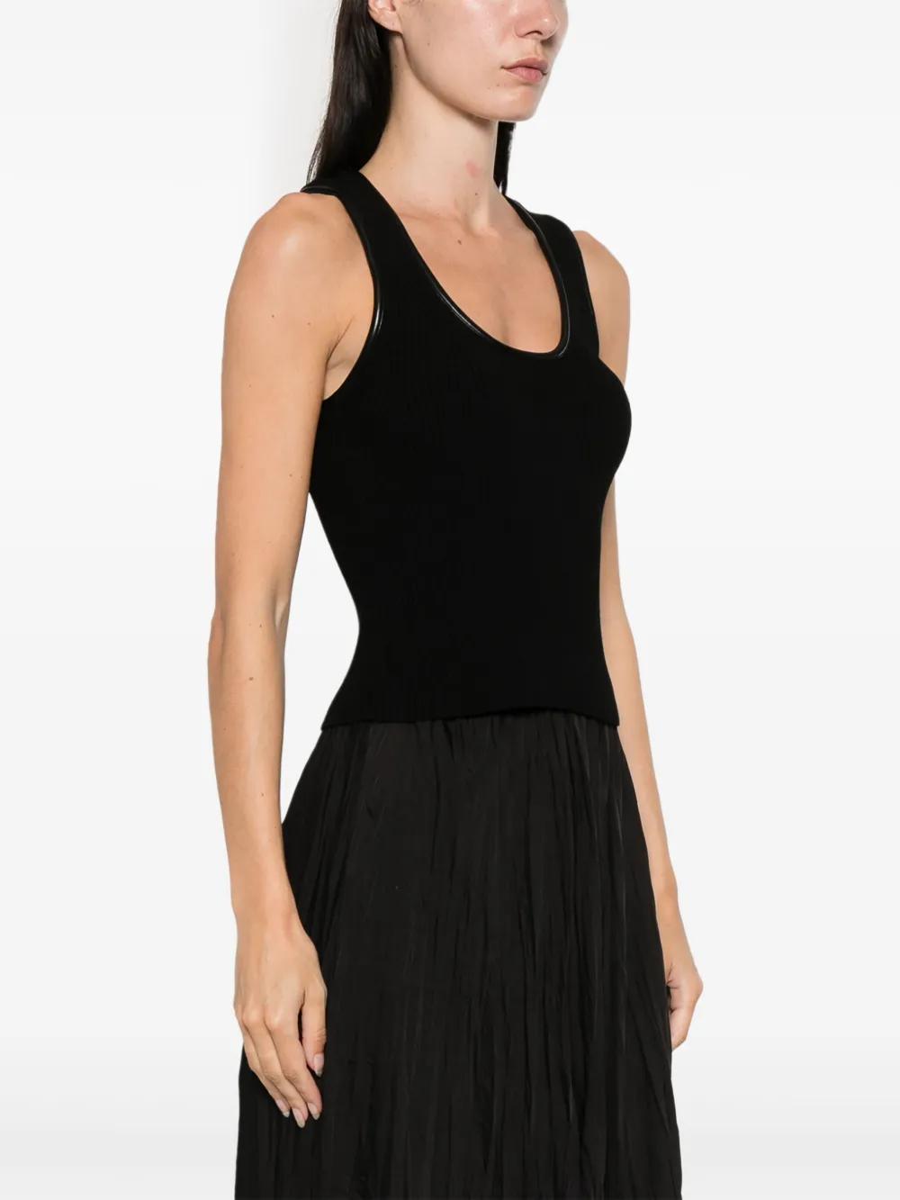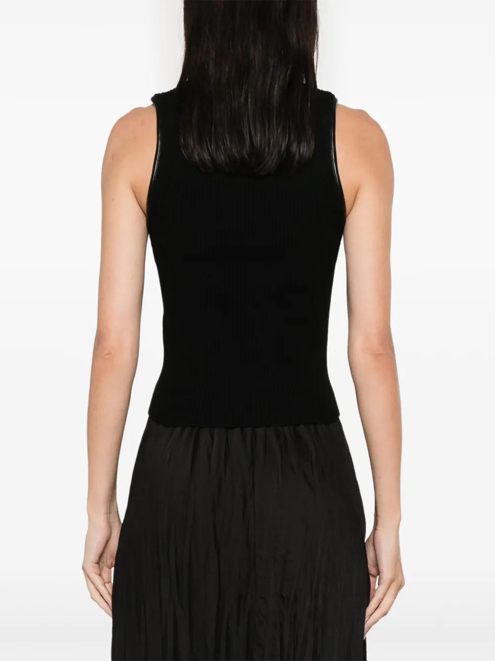 black EcoVero™ blend ribbed knit piped-trim detailing scoop neck sleeveless raw-cut edge straight hem