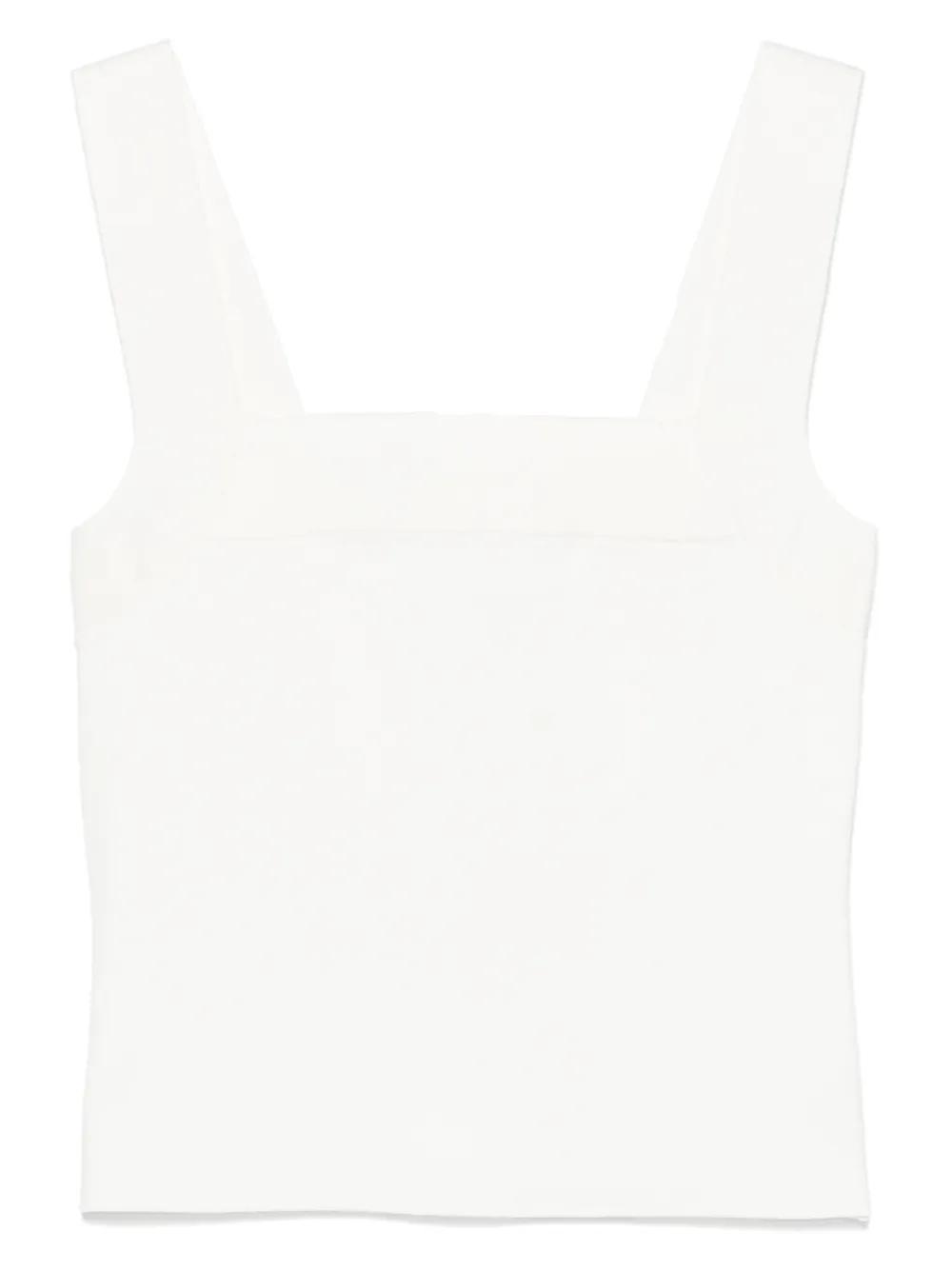 burgundy V-neck sleeveless ribbed knit straight hem logo label