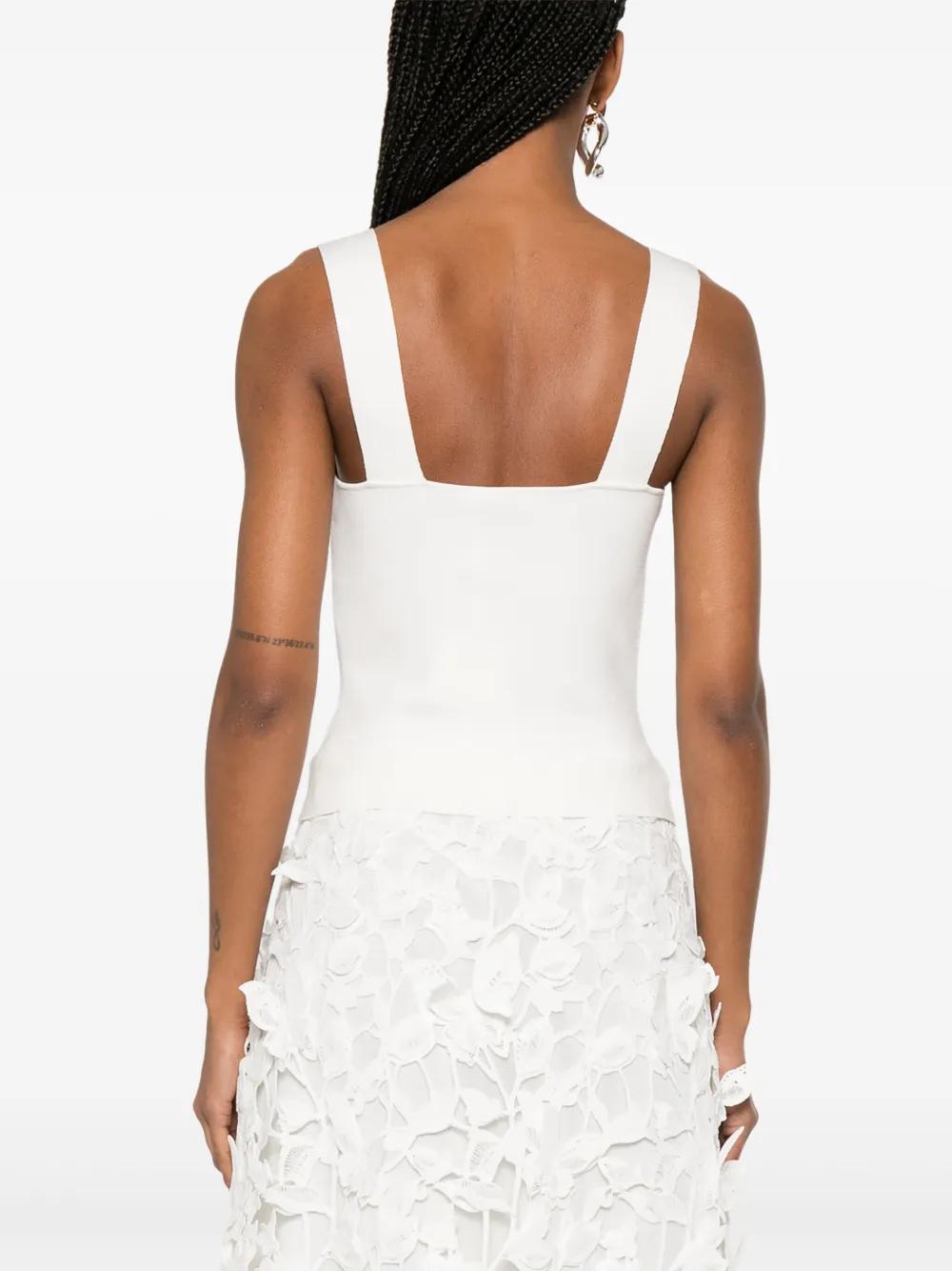 black lace trim scoop neck adjustable shoulder straps side button closure logo label