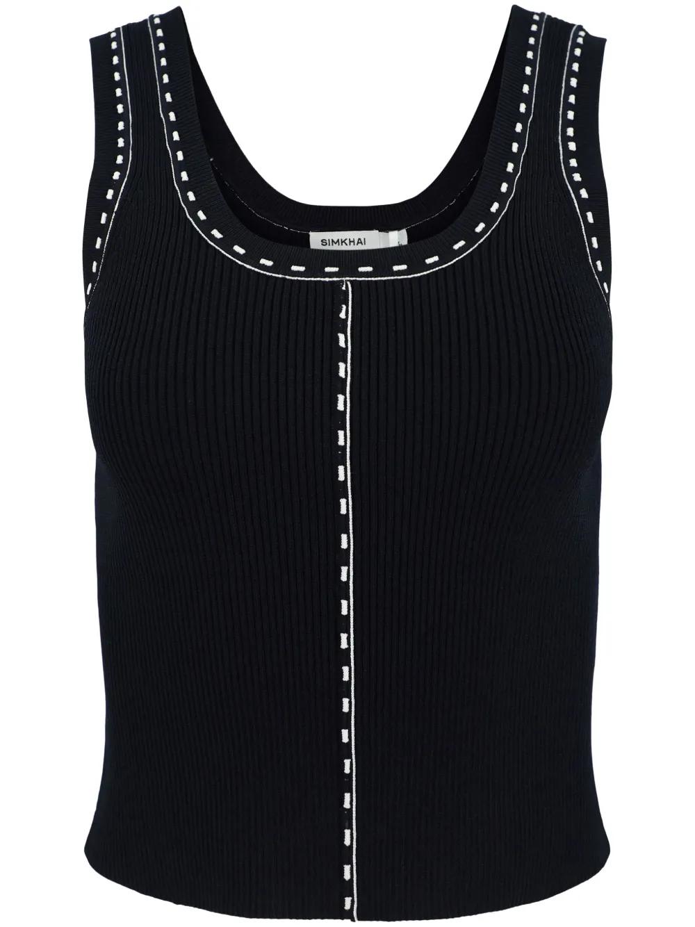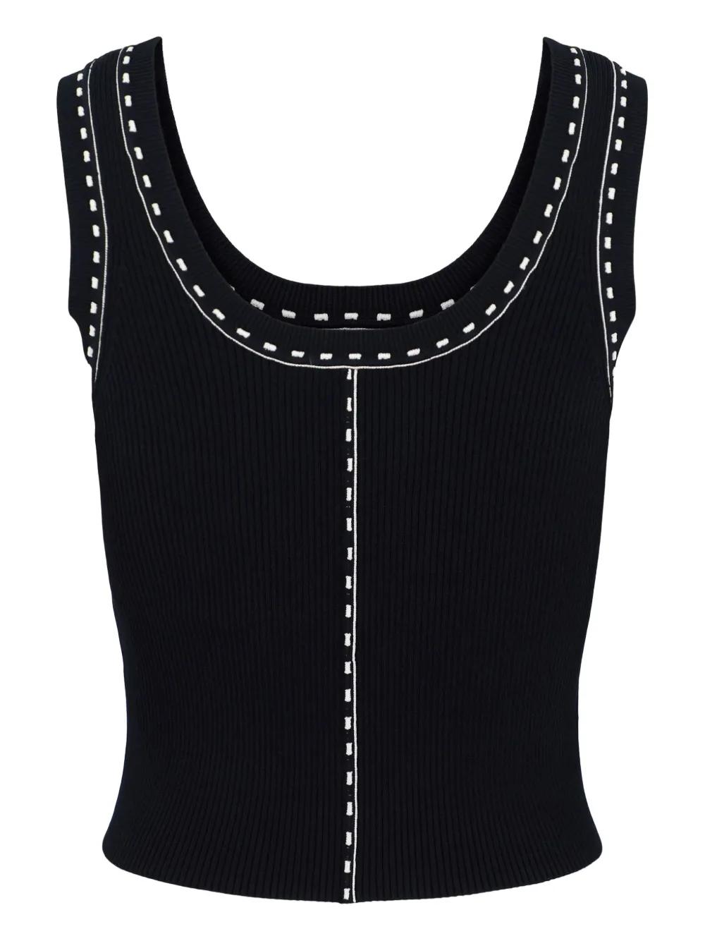 black/white knitted construction ribbed knit stretch-design contrast stitching scoop neck sleeveless straight hem
