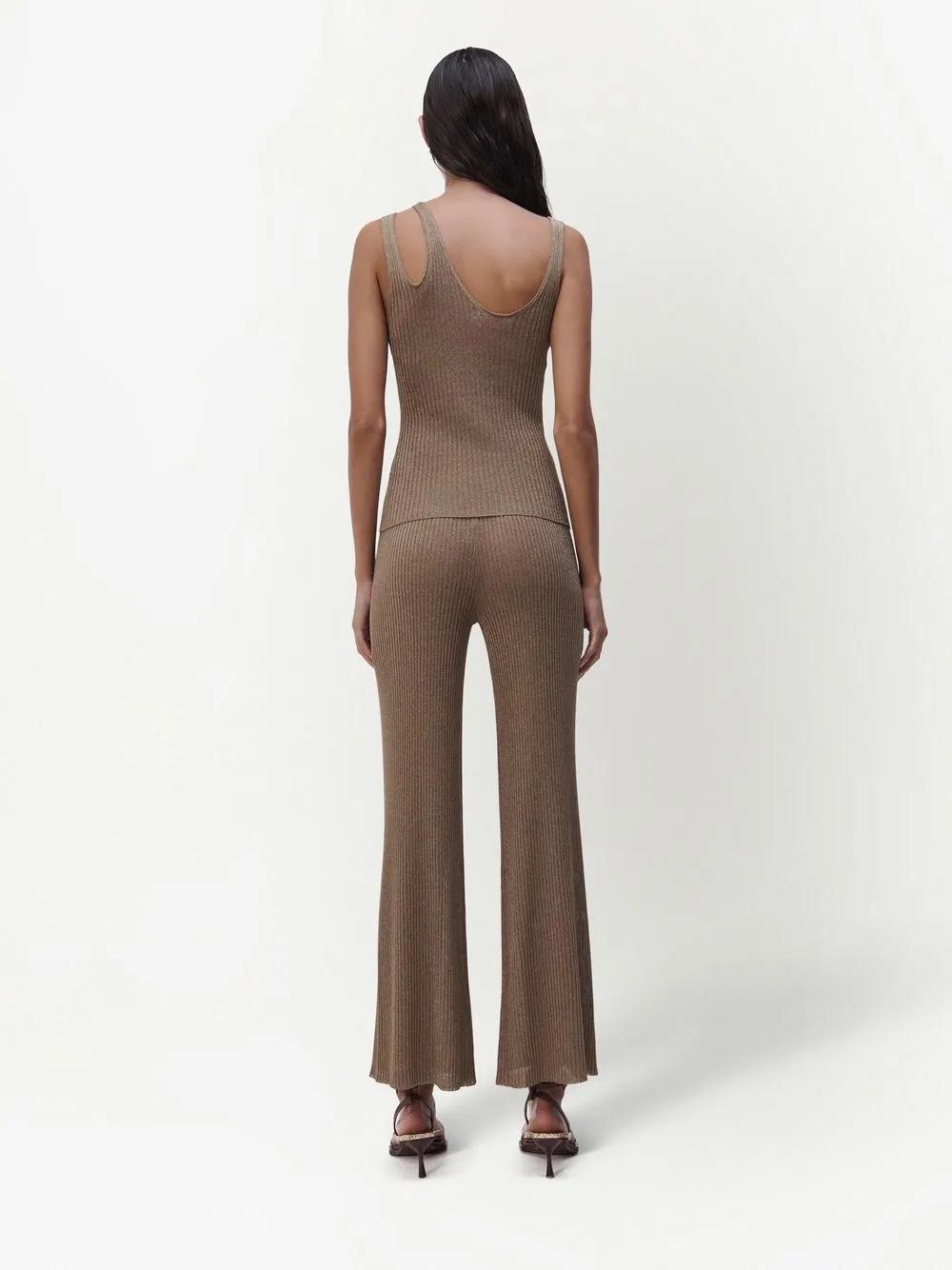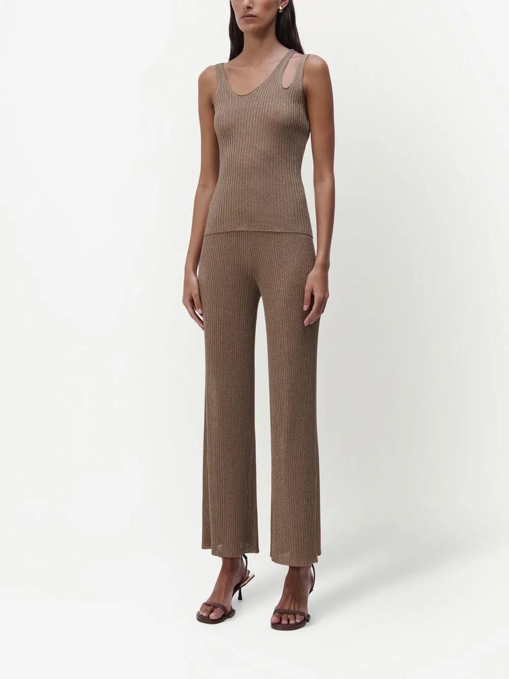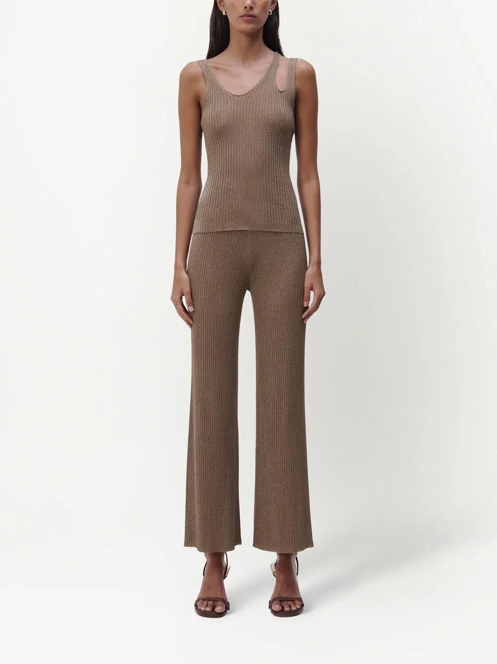 marigold ribbed knit metallic effect asymmetric design cut-out detailing sleeveless straight hem