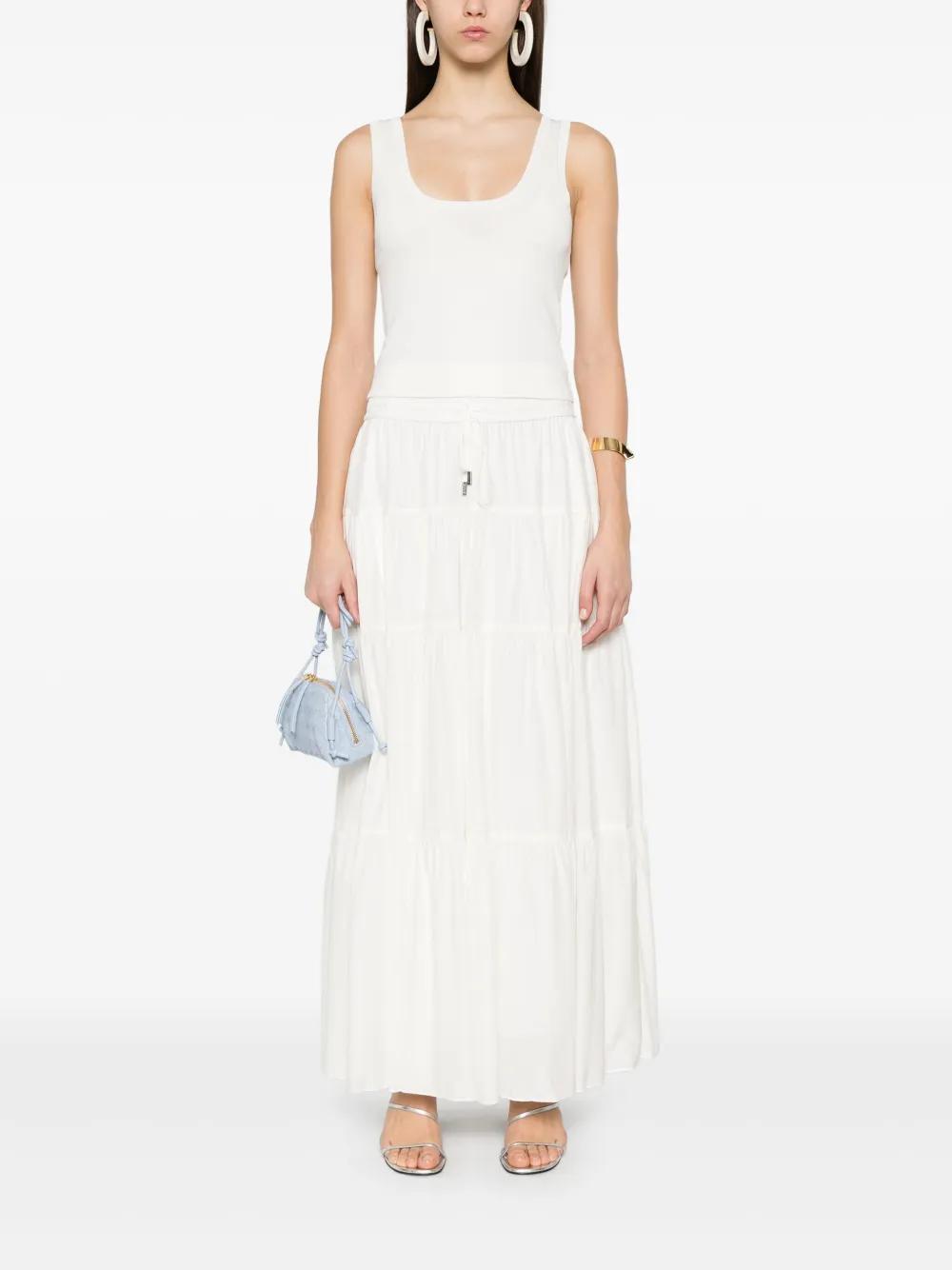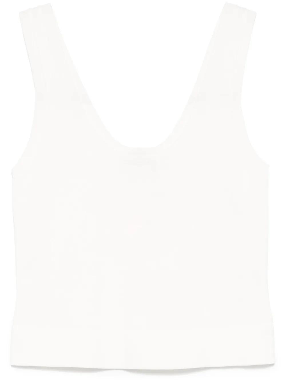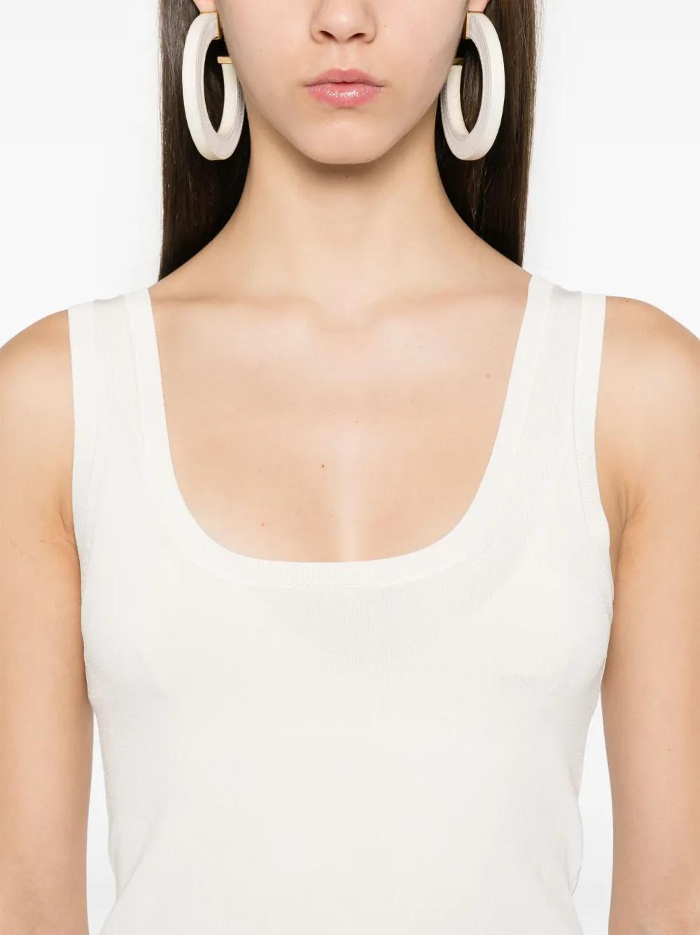chalk white crinkled finish satin finish scoop neck V-back sleeveless straight hem