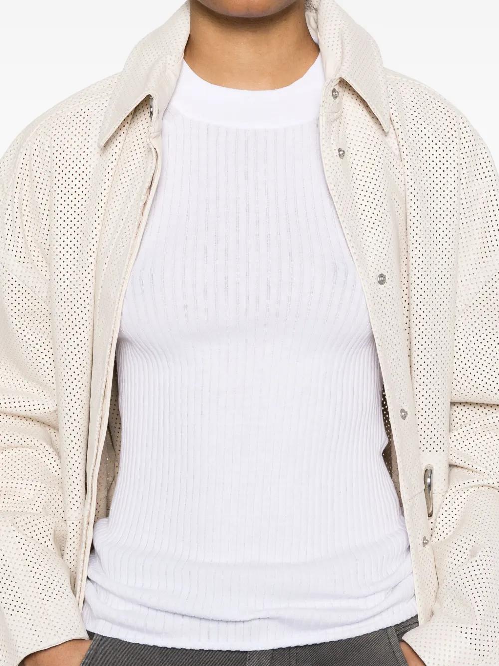 - Dopasowany fason nie krępujący ruchów. - Klasyczny, okrągły dekolt. - Nieregulowane, nieodpinane ramiączka. - Model wykonany z dzianiny o strukturze prążków, która jest niezwykle elastyczna i miękka, przez co dobrze dopasowuje się do sylwetki i jest wygodna w użytkowaniu. - Długość: 61,5 cm. - Szerokość pod pachami: 34 cm. - Wymiary podane dla rozmiaru: S.