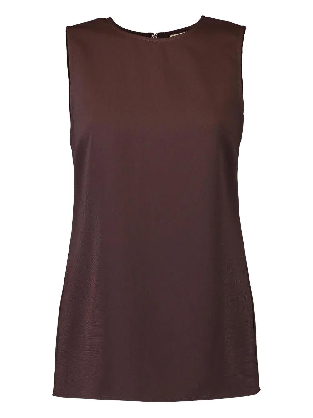 cream white bouclé construction satin weave panelled design frayed edge crew neck sleeveless asymmetric hem