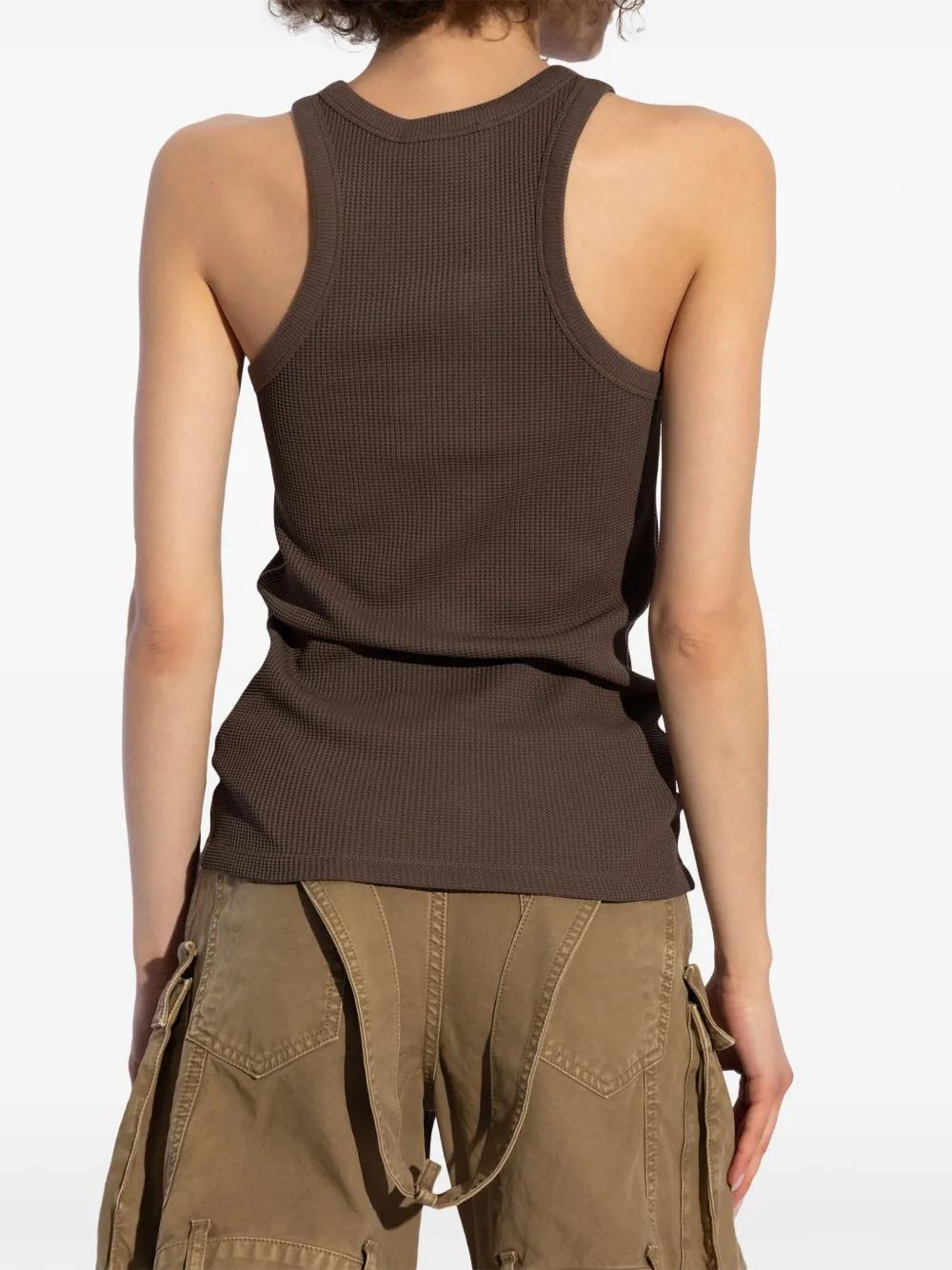 brown cotton blend sleeveless button-down collar embroidered logo at the chest