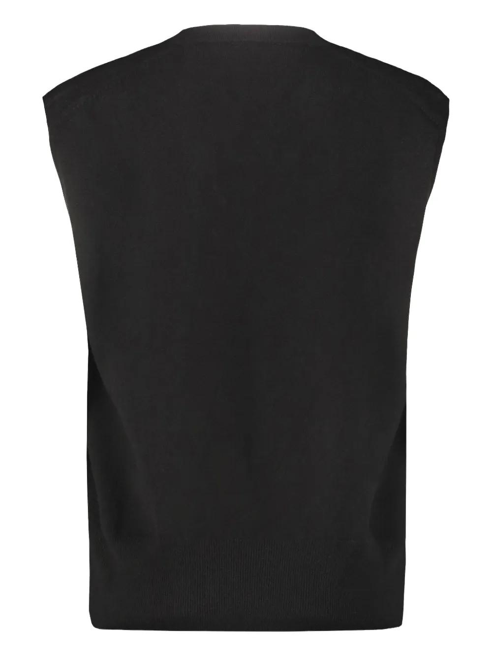 black stretch-design lace embroidery crystal embellishment logo trim appliqué logo at the chest crew neck sleeveless unlined elasticated hem concealed rear zip fastening