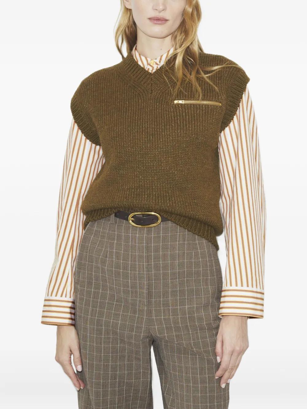 black merino wool fine knit stud detail at the hem crew neck sleeveless straight hem