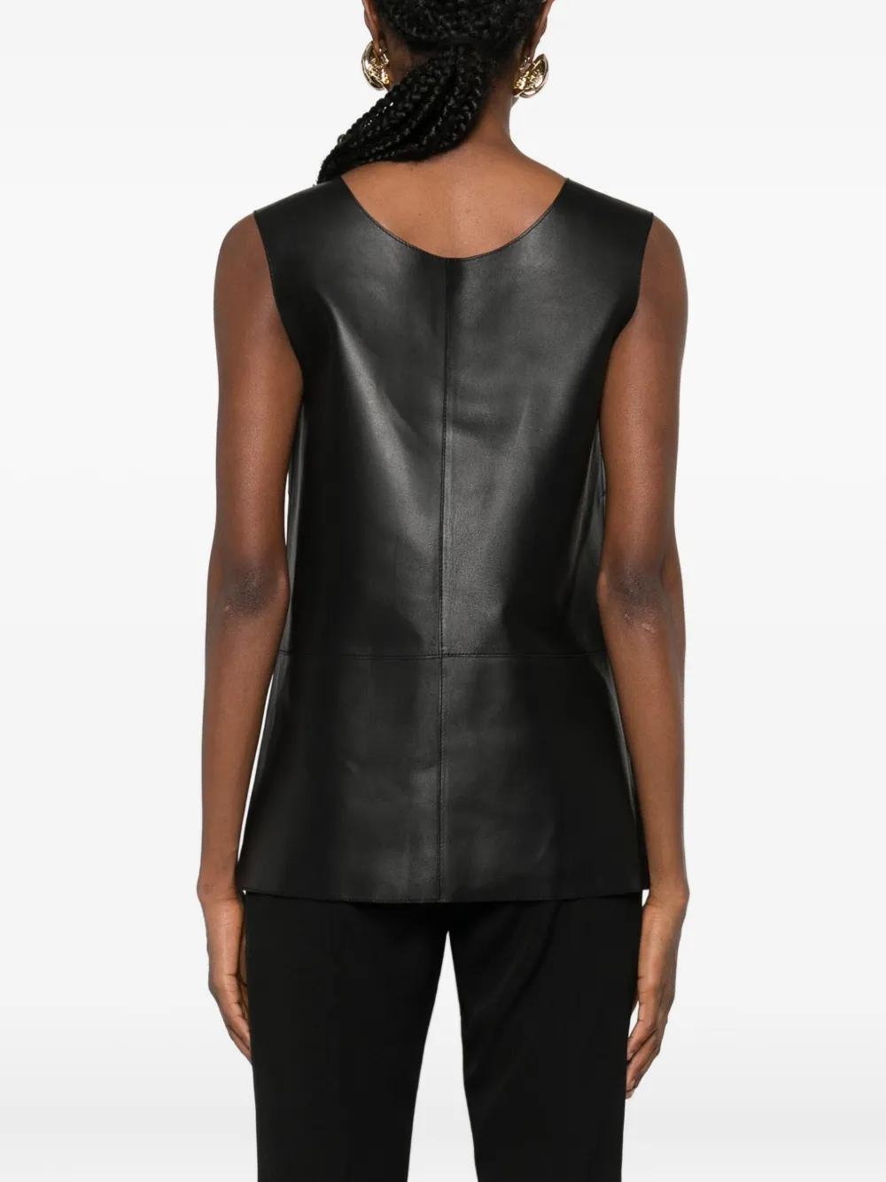 scoop-neck leather top - Black