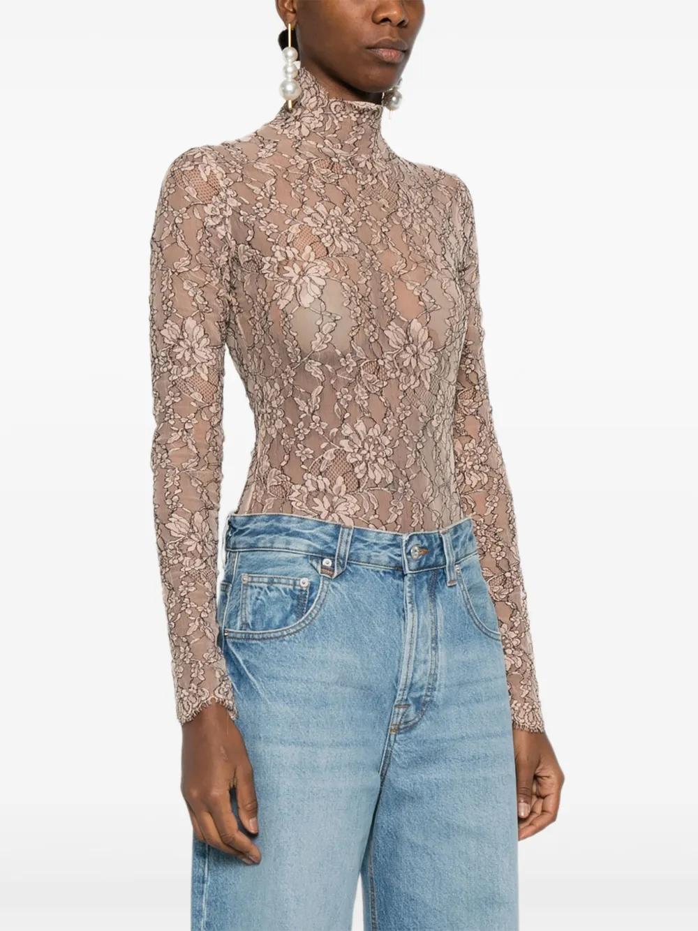 Valentino Garavani floral-lace high-neck bodysuit - Neutrals