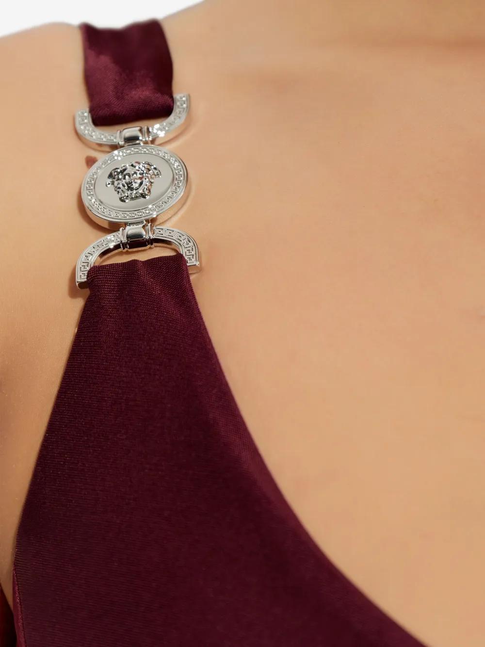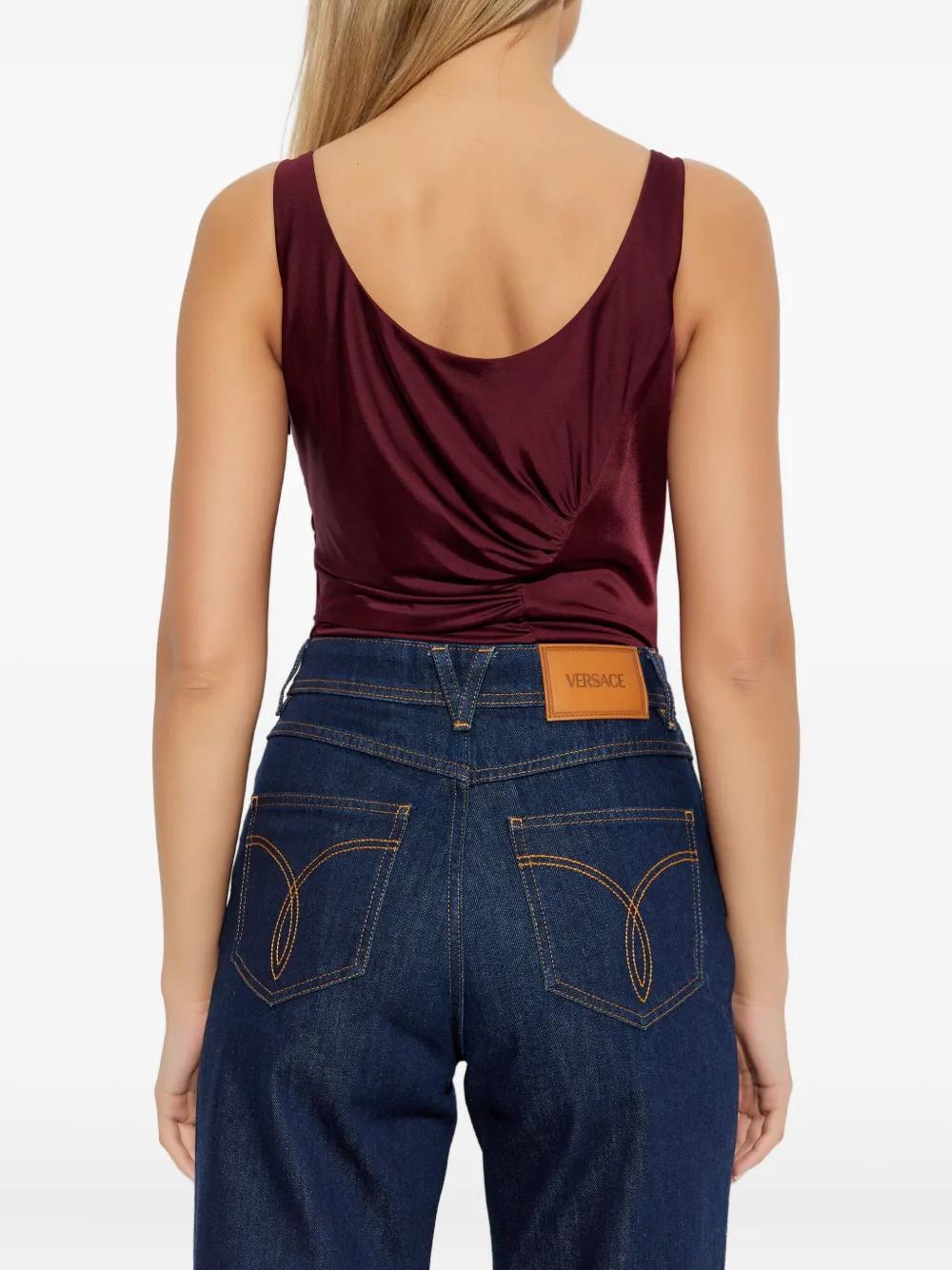 dark red embellishment gathered detailing sleeveless scoop neck tonal stitching Just a reminder that this piece must be tried on over your own garments.