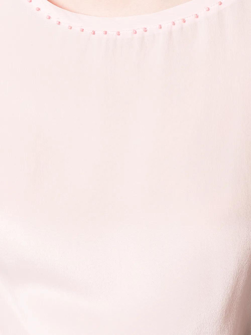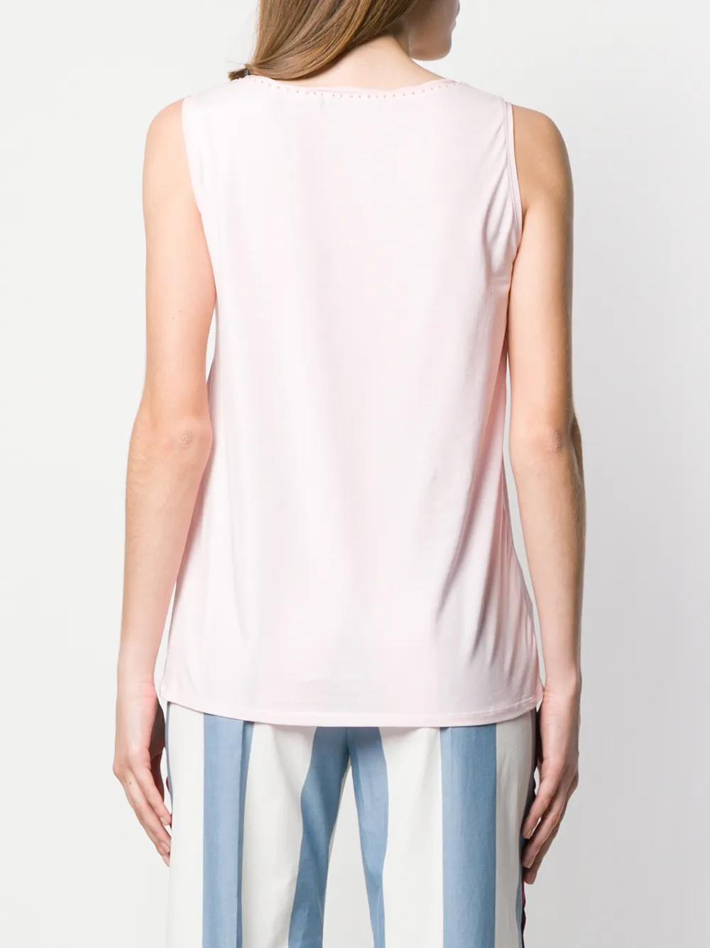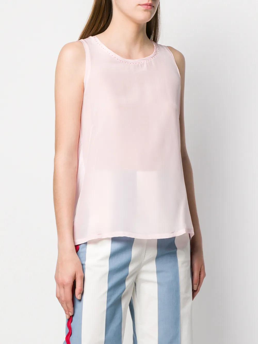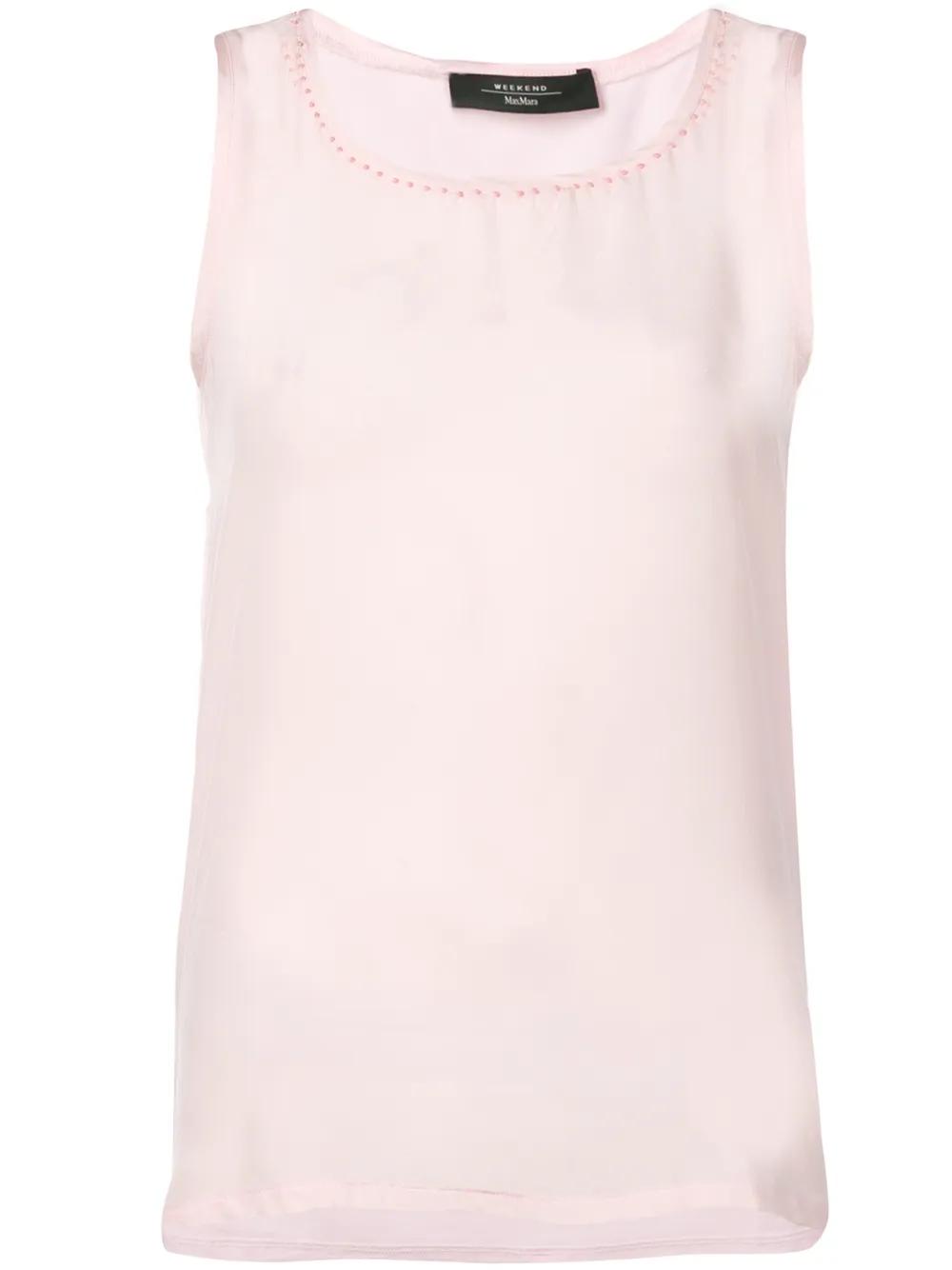 Light pink silk bead embellished top from Weekend Max Mara featuring a round neck, a sleeveless design, a sheer construction and a straight hem.