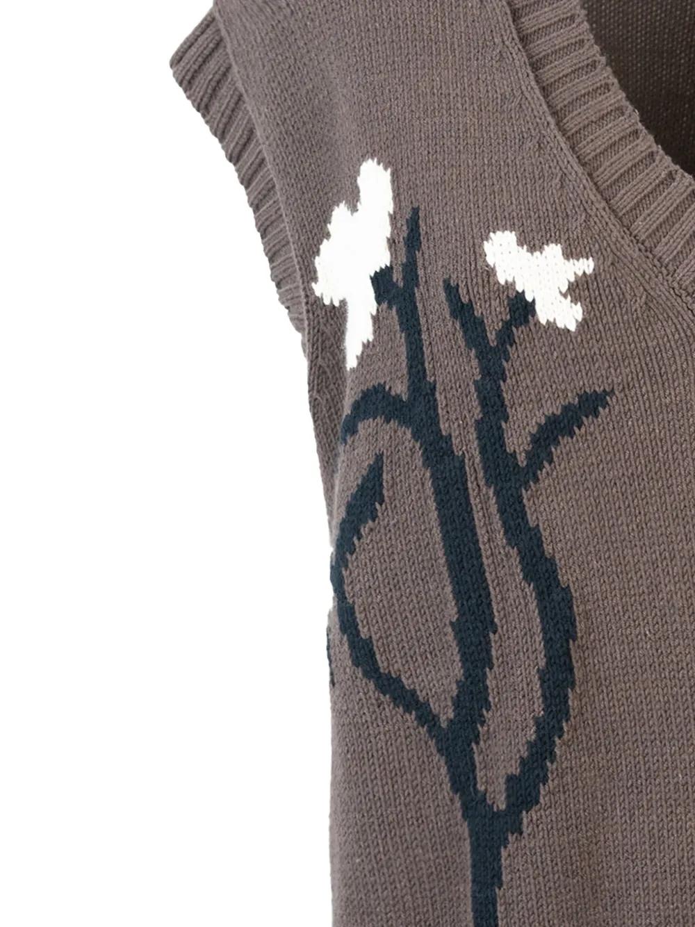 Weekend Max Mara floral-embroidered V-neck sweater - Brown