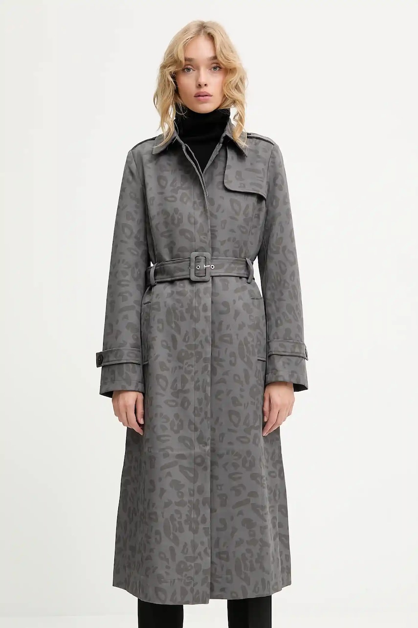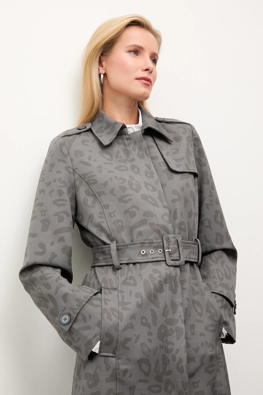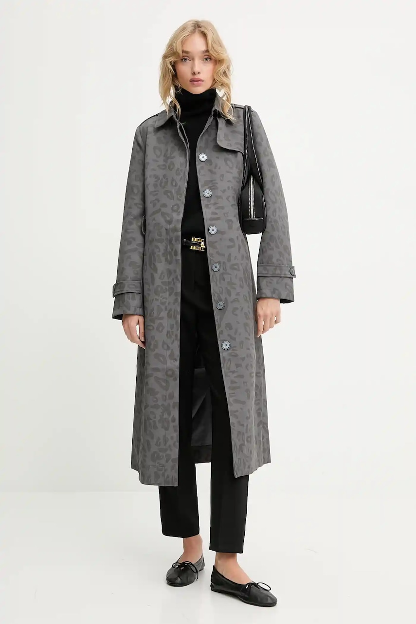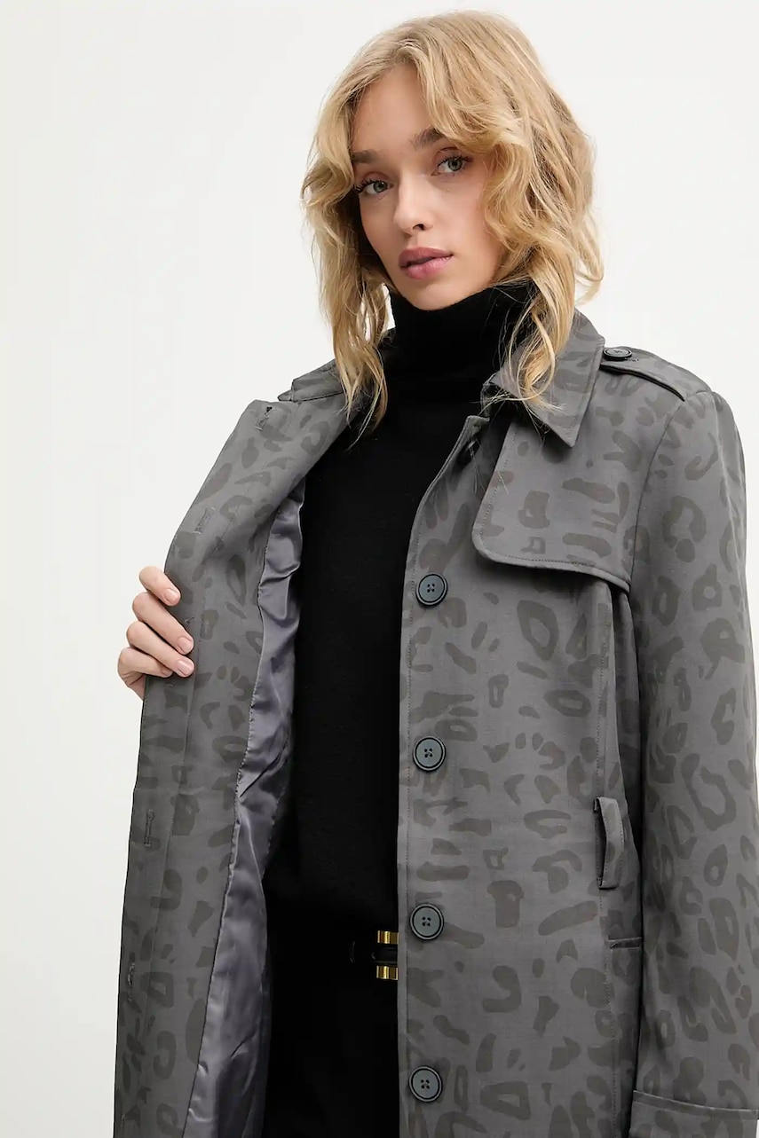 - Prosty, nie blokujący ruchów fason. - Nieocieplony model na podszewce. - Model z kołnierzykiem. - Na ramionach pagony. - W talii pasek, który modeluje sylwetkę i dodatkowo podkreśla talię. - Zapięcie na guziki. - Wsuwane kieszenie. - Cienki materiał. - Długość rękawa: 62 cm. - Długość: 118 cm. - Szerokość pod pachami: 45 cm. - Szerokość w ramionach: 38 cm. - Wymiary podane dla rozmiaru: S.