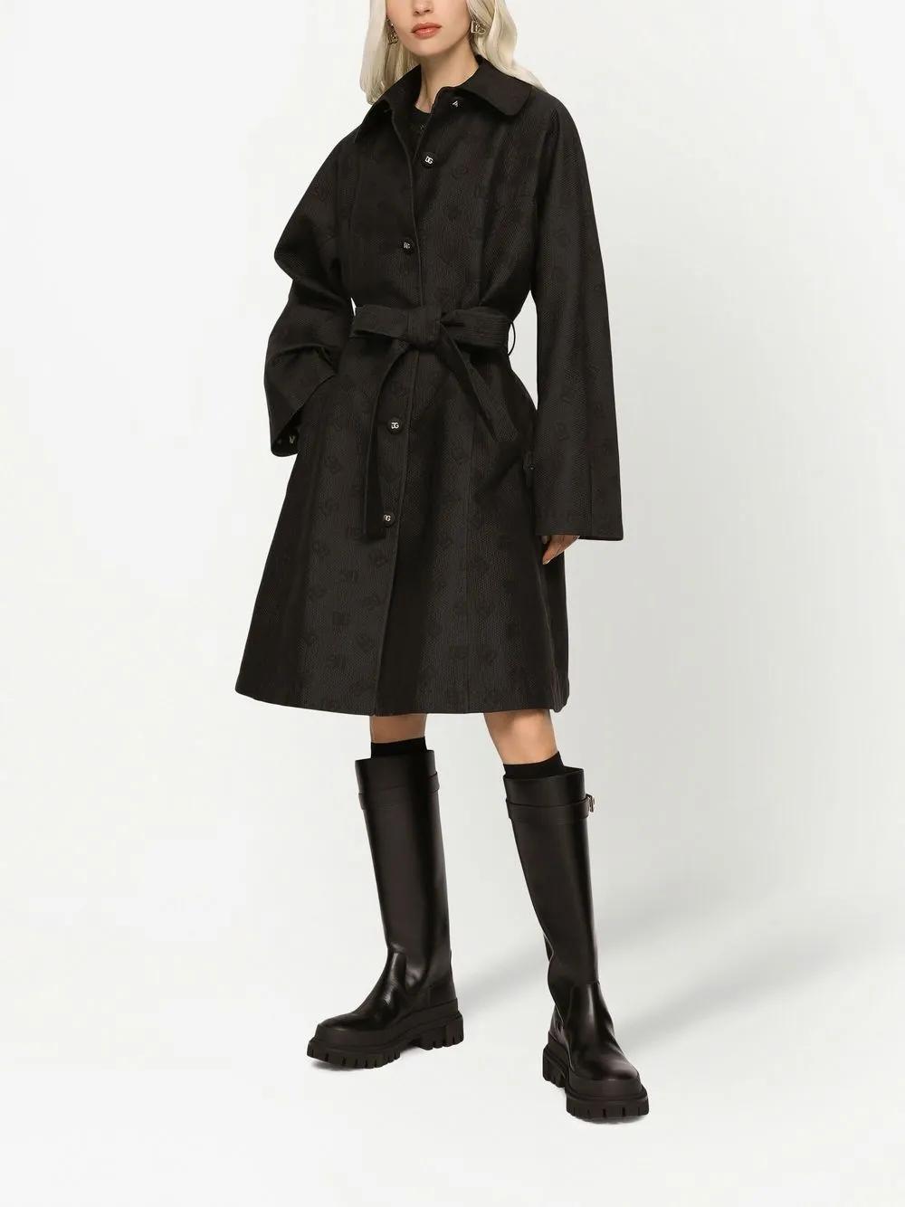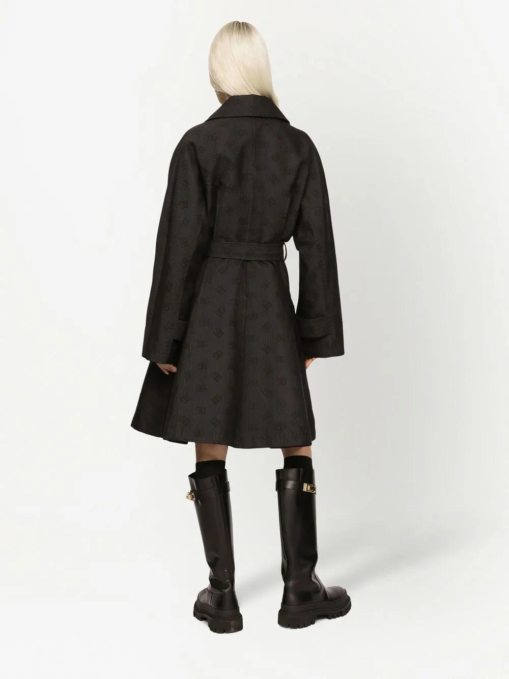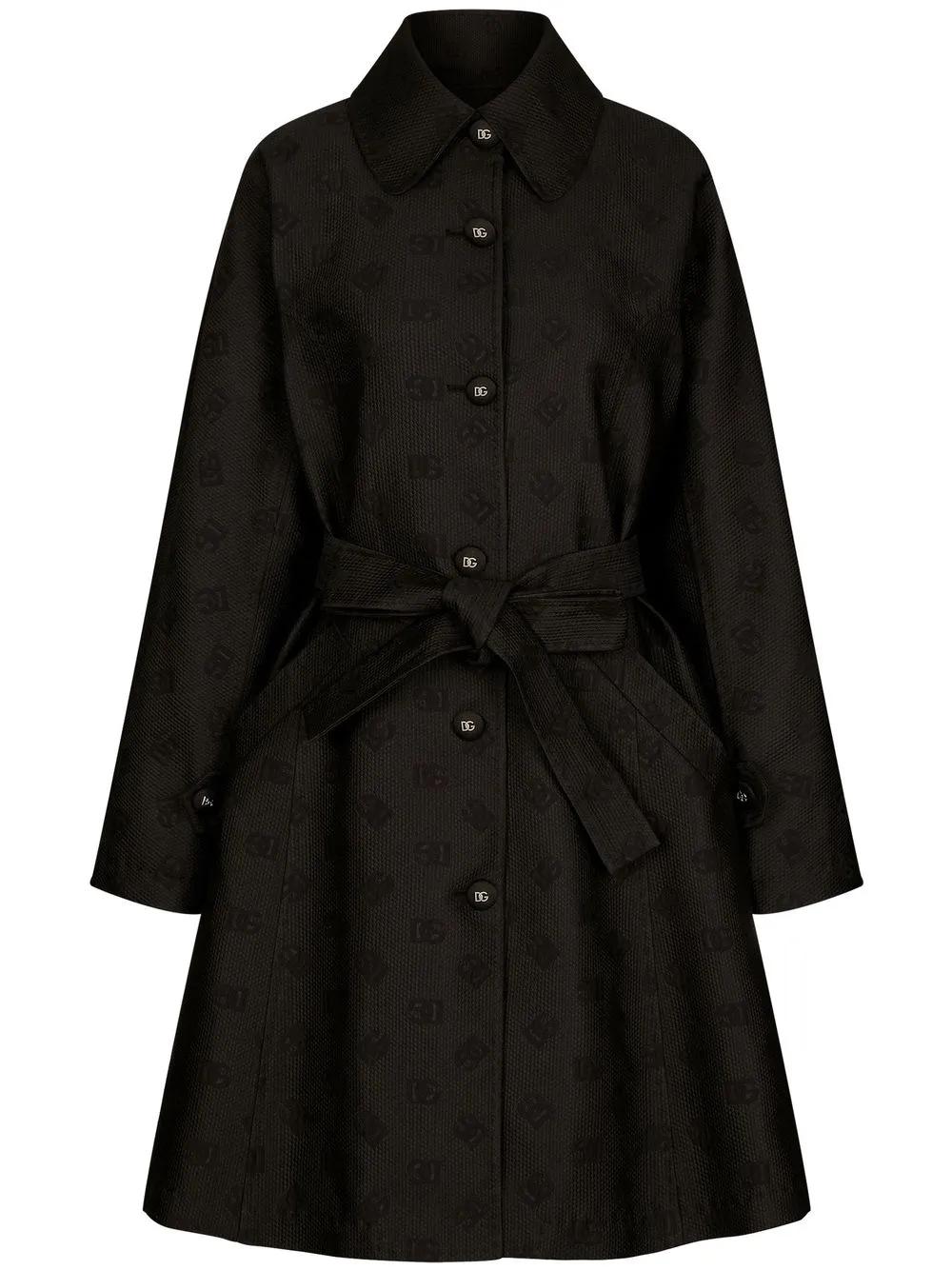 Dolce & Gabbana DG-logo jacquard belted coat - Black