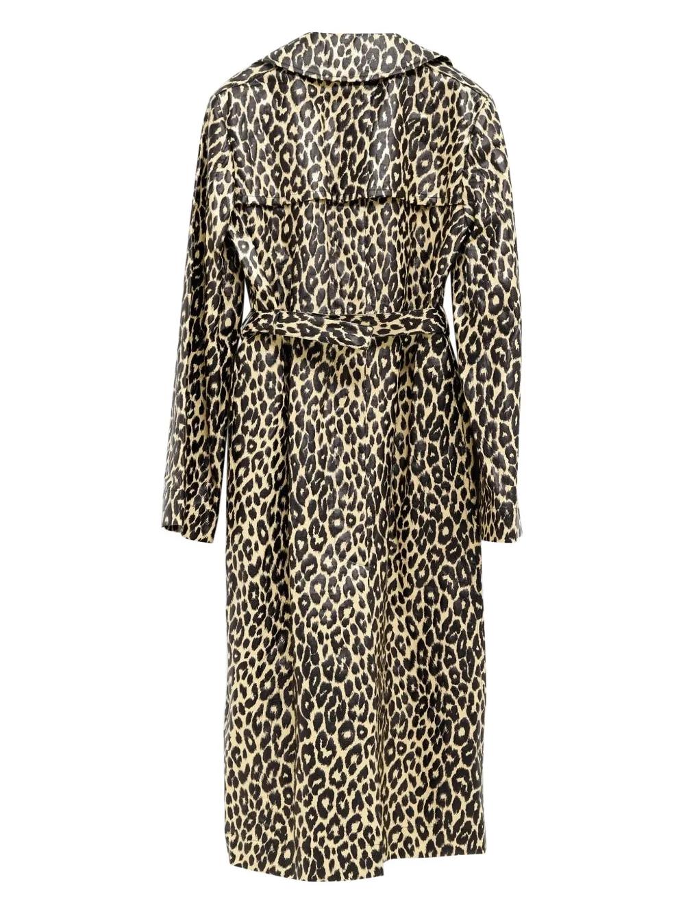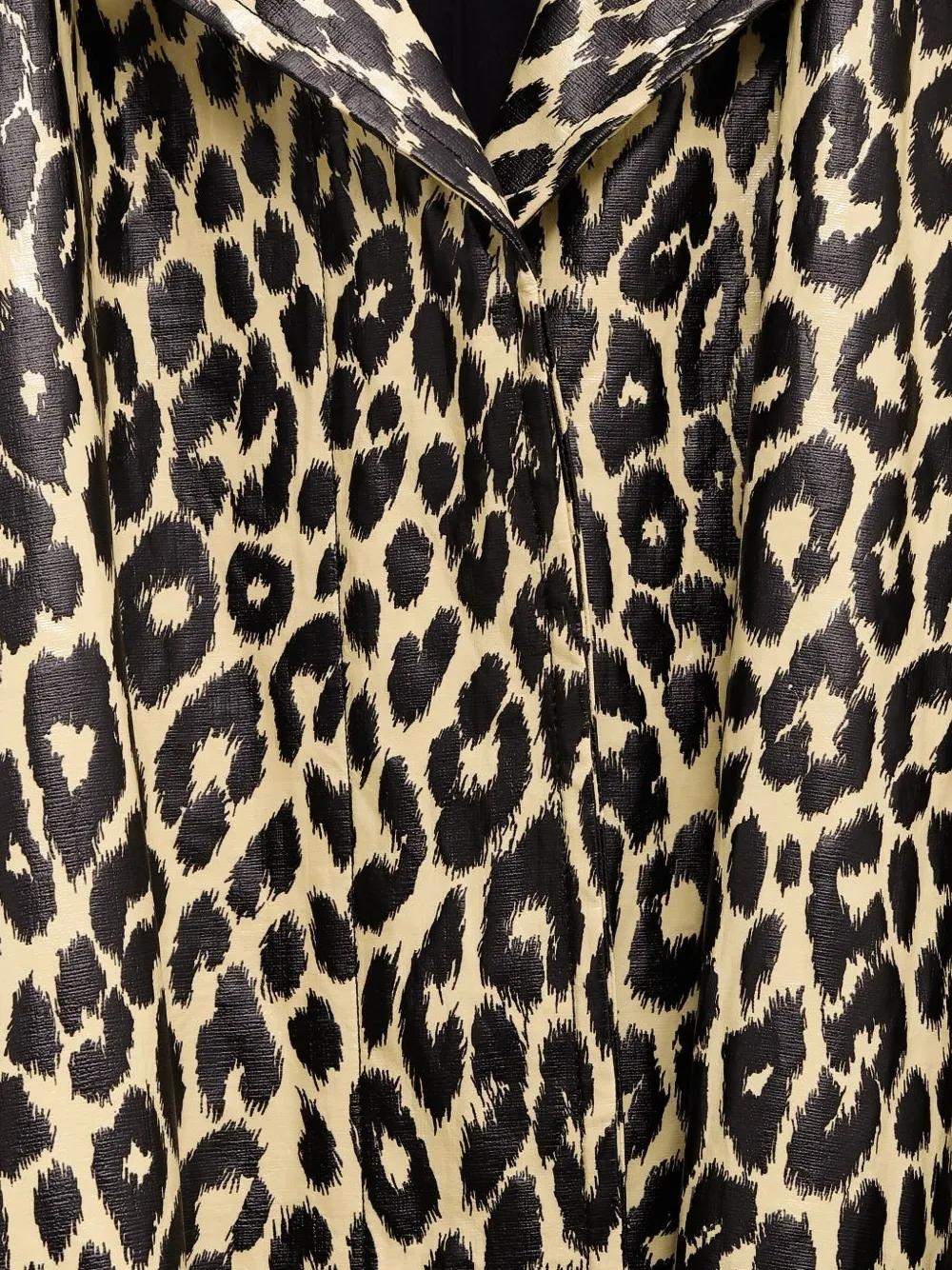 pale yellow leopard print belted waist notched lapel long sleeves button fastening