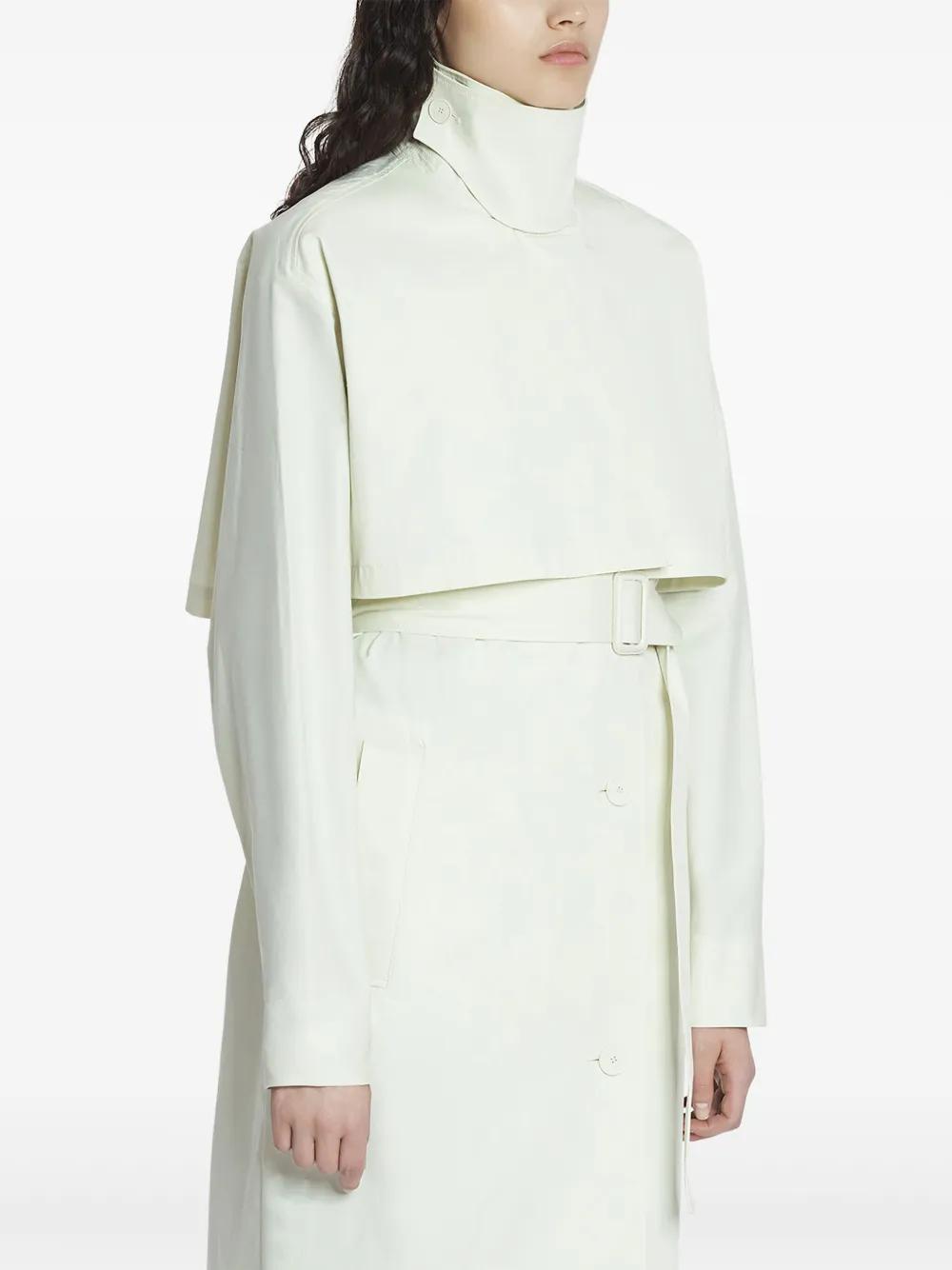 light green front button fastening detachable and adjustable waist belt two side welt pockets storm flap