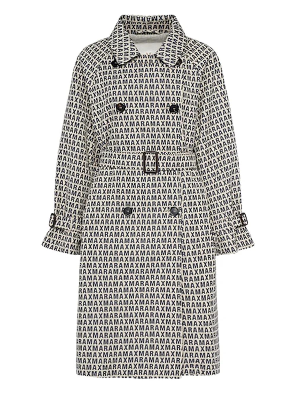 black cotton blend logo pattern belted waist double-breasted fastening long sleeves
