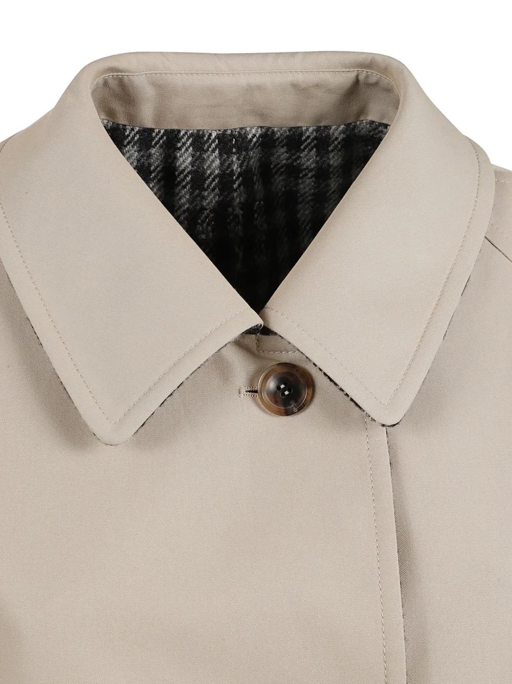 beige cotton detachable belt double-breasted button fastening lapel collar front flap pockets