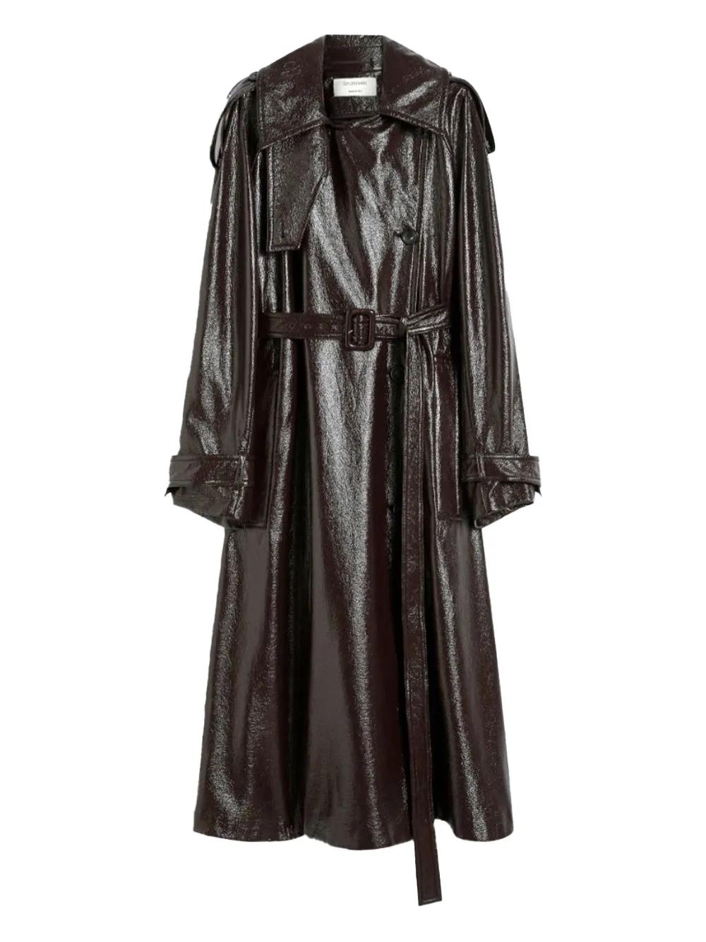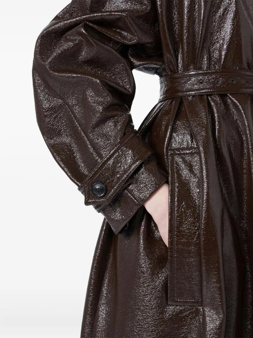 coffee brown front button fastening detachable belt long sleeves epaulettes