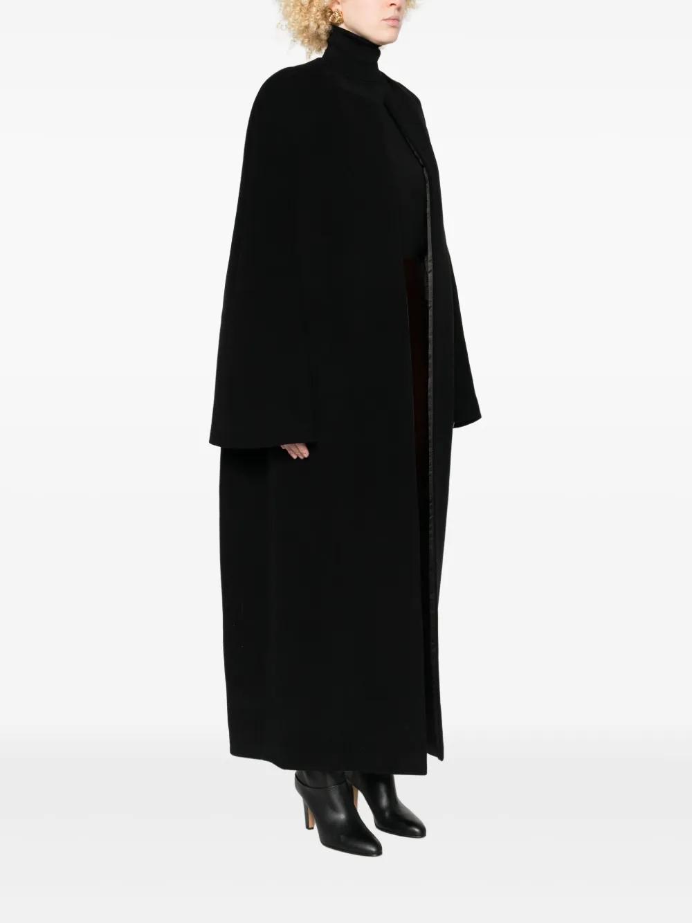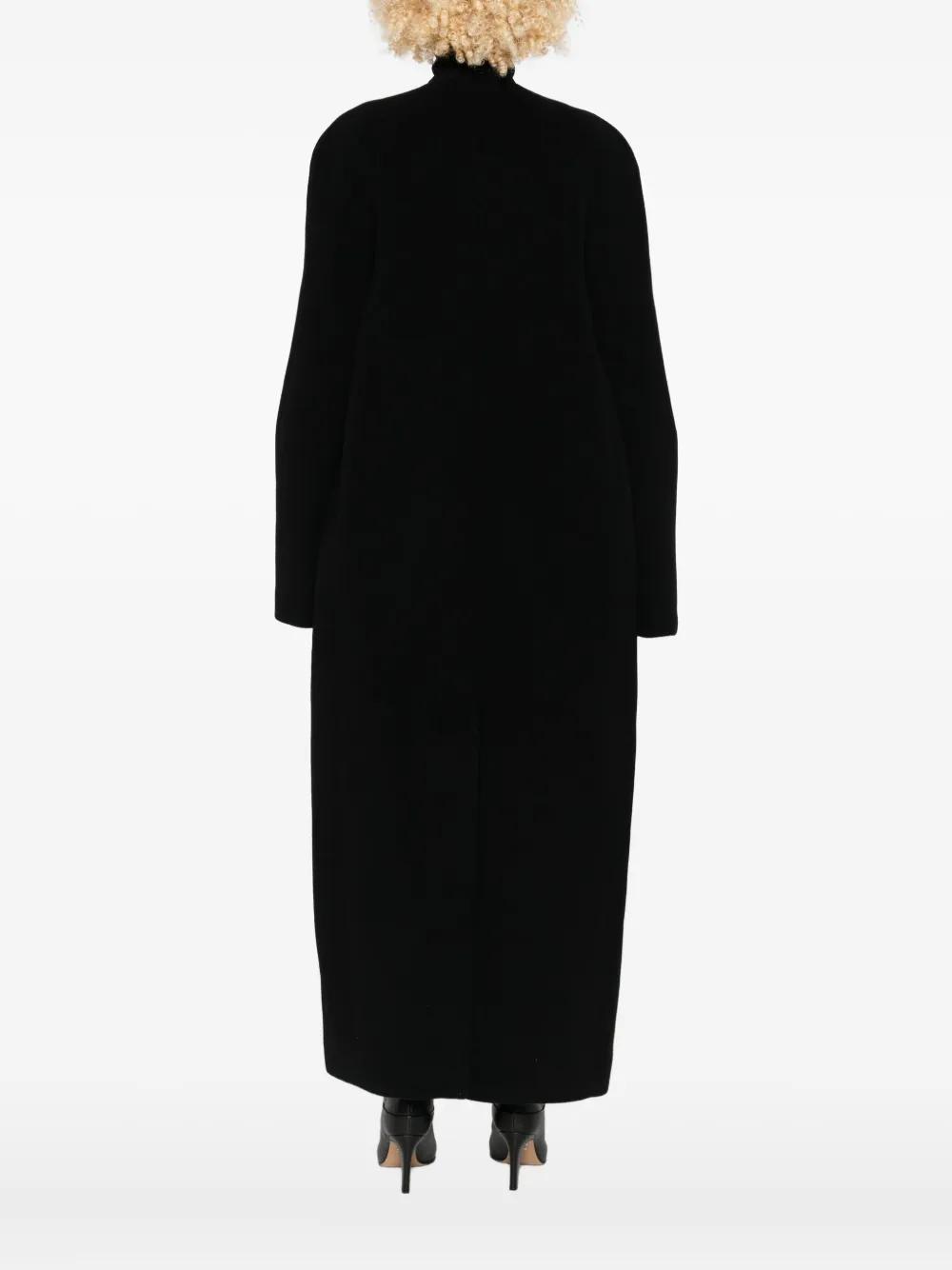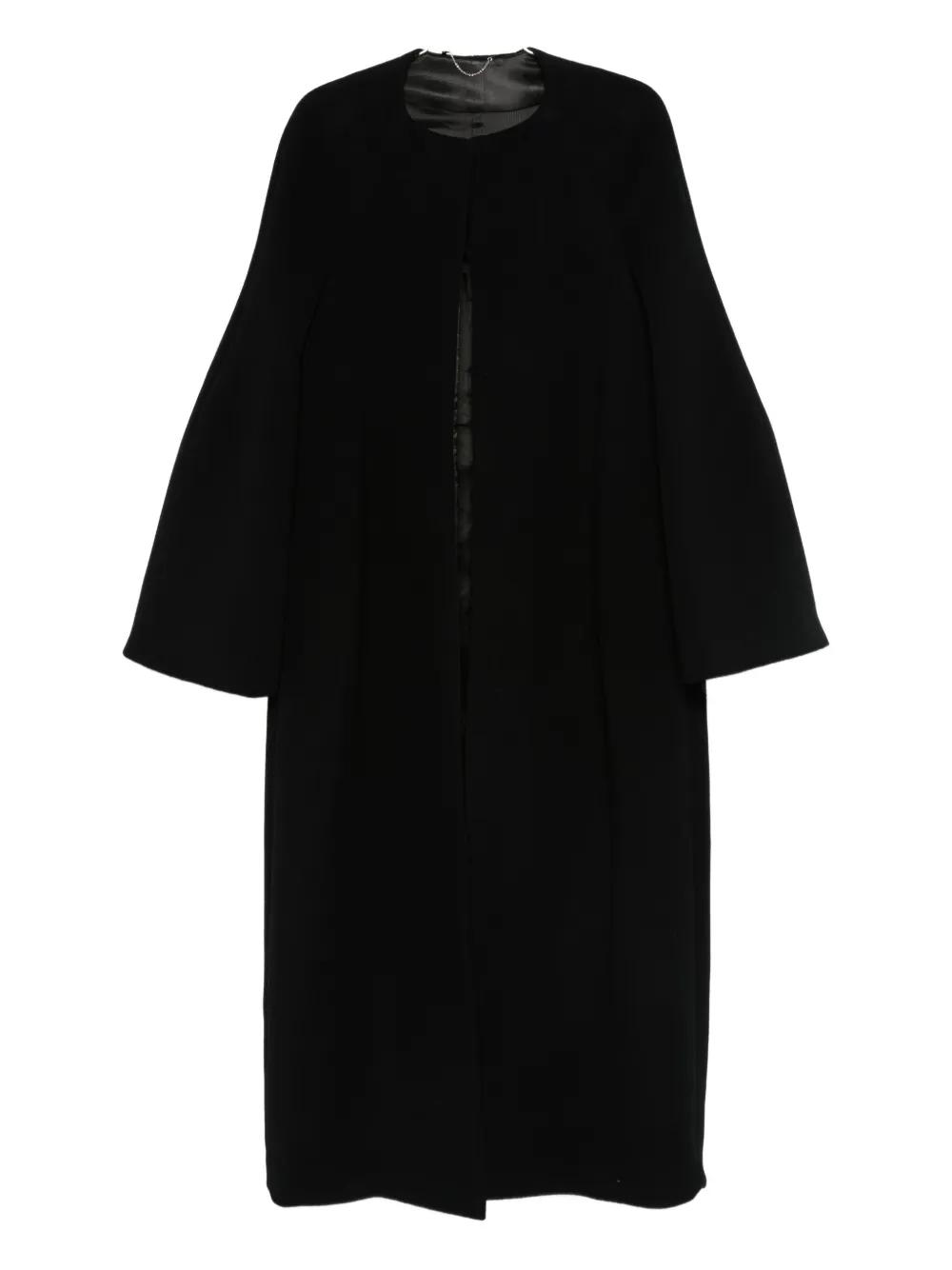 black bell sleeves centre-front opening round neck long sleeves straight hem