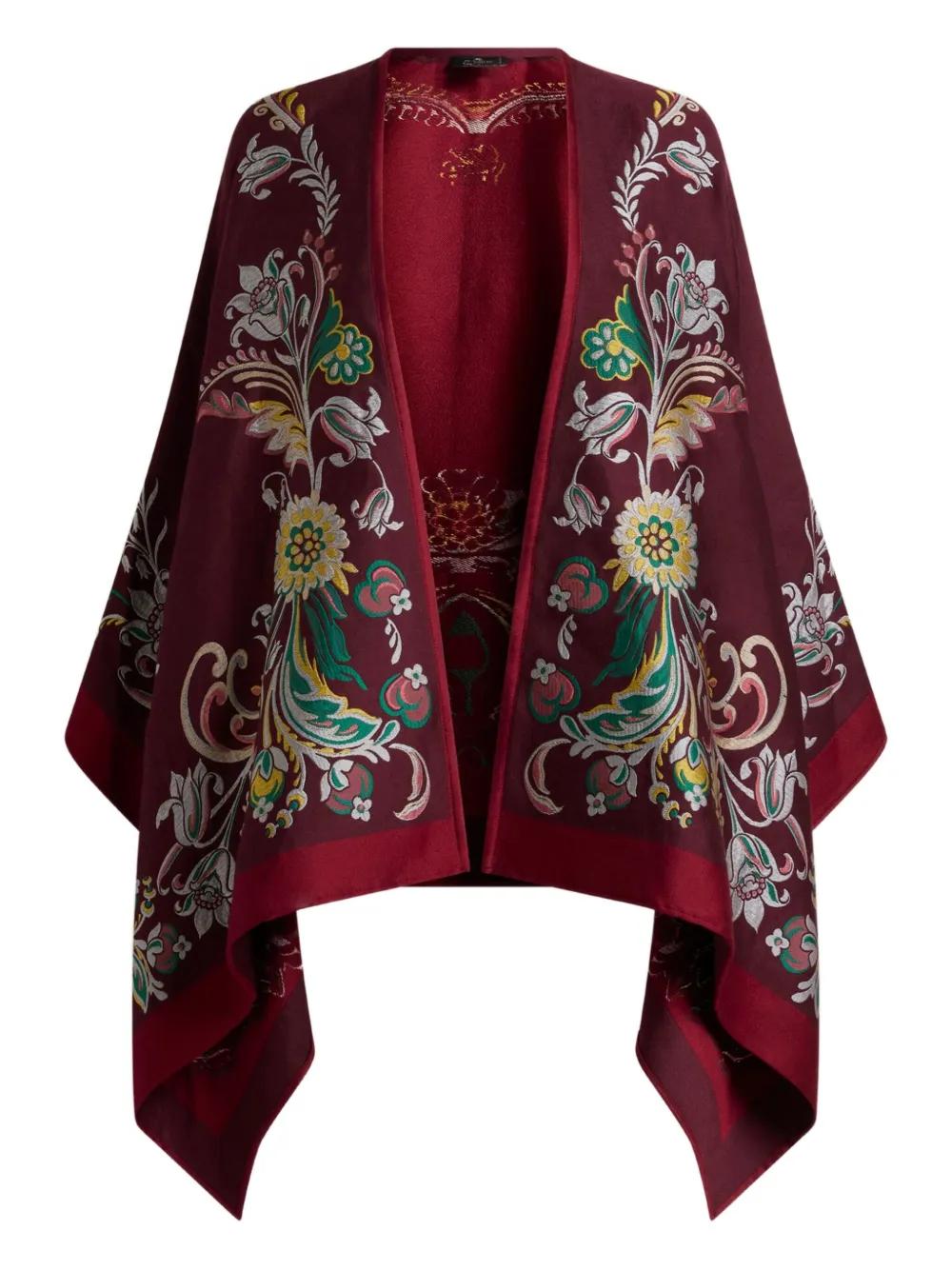 ETRO floral-jacquard cape - Red