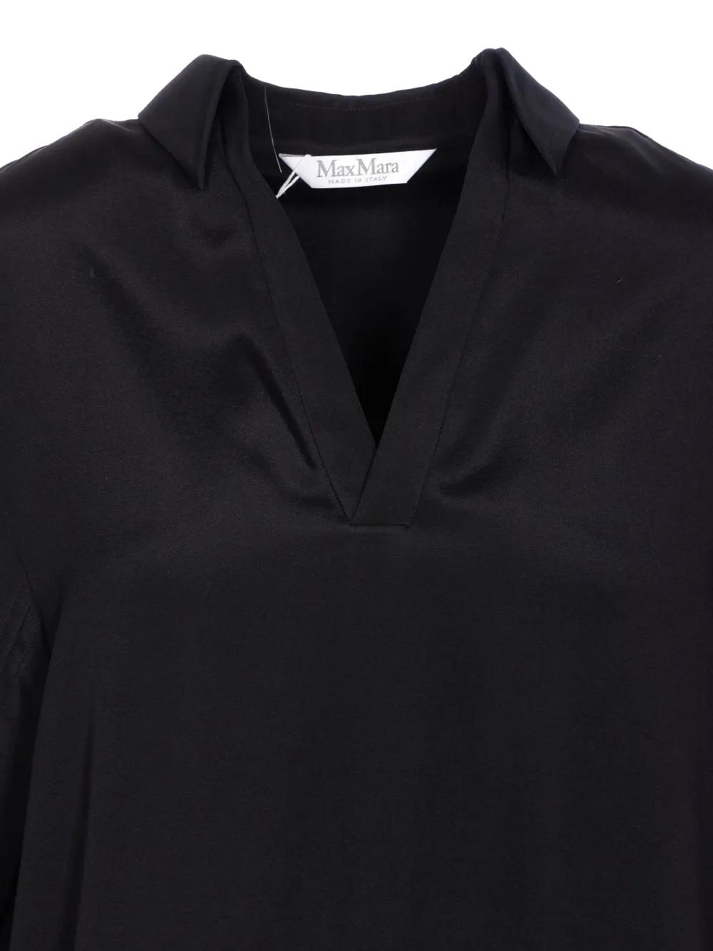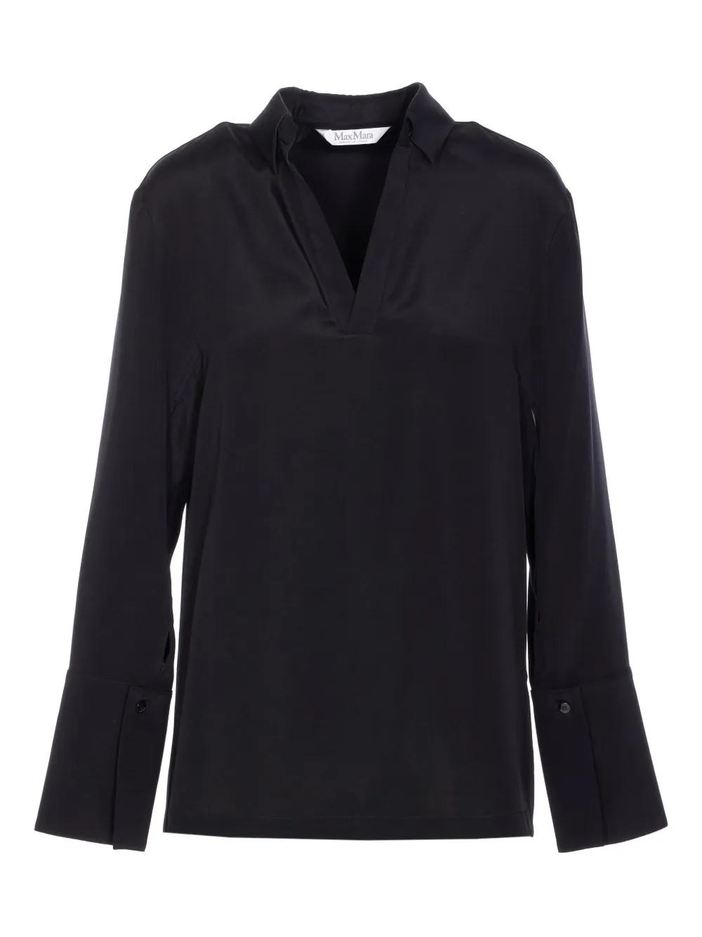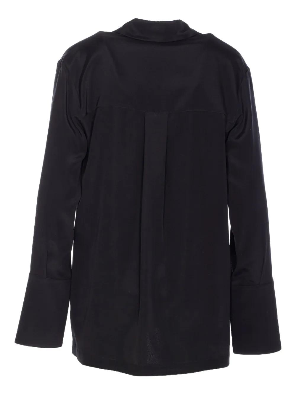 black polo collar buttoned cuffs long sleeves stretch-silk