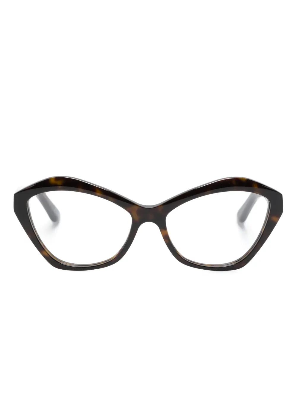 Havana brown acetate tortoiseshell effect cat-eye frame clear lenses silver-tone logo lettering sculpted arms with curved tips These glasses come with a protective case. All glasses from FARFETCH are sold as non-prescription frames.
